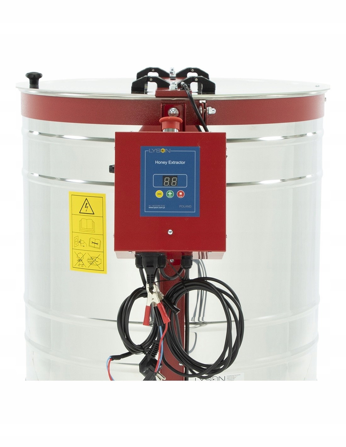 Посилена структура барабана та розташування двигуна під барабаном роблять медогонку медогонкою стабільний під час роботи.віджим. Завдяки конічній формі дна мед швидше стікає у відстійник.