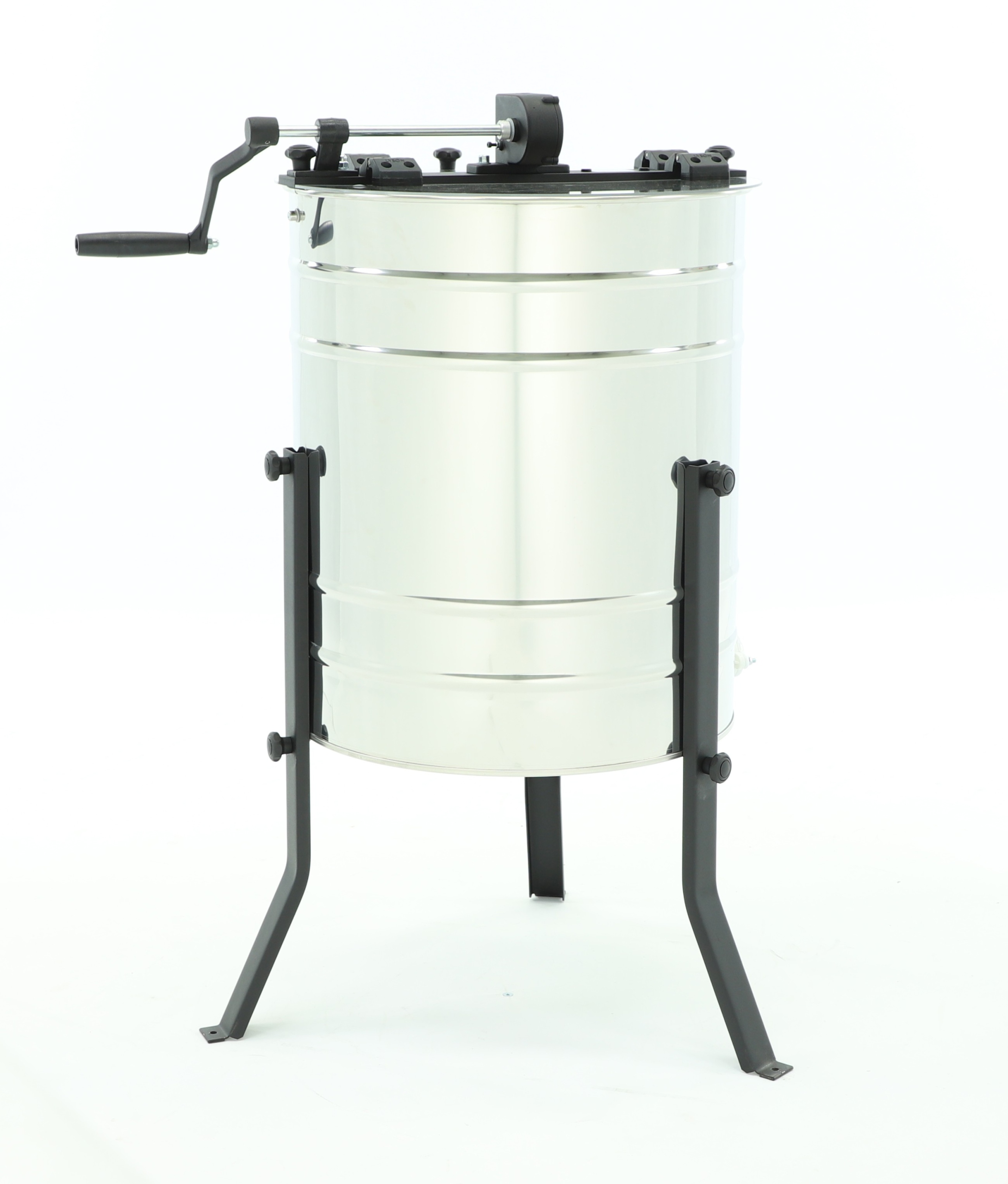 Діагональна медогонка BASIC LINE на 3 скибочки є універсальною, що означає, що вона може вміщувати різні типи рамок: малі регульовані та більші, такі як великопольські, даданські, варшавські, подовжені варшавські. рами, рами Langstroth.