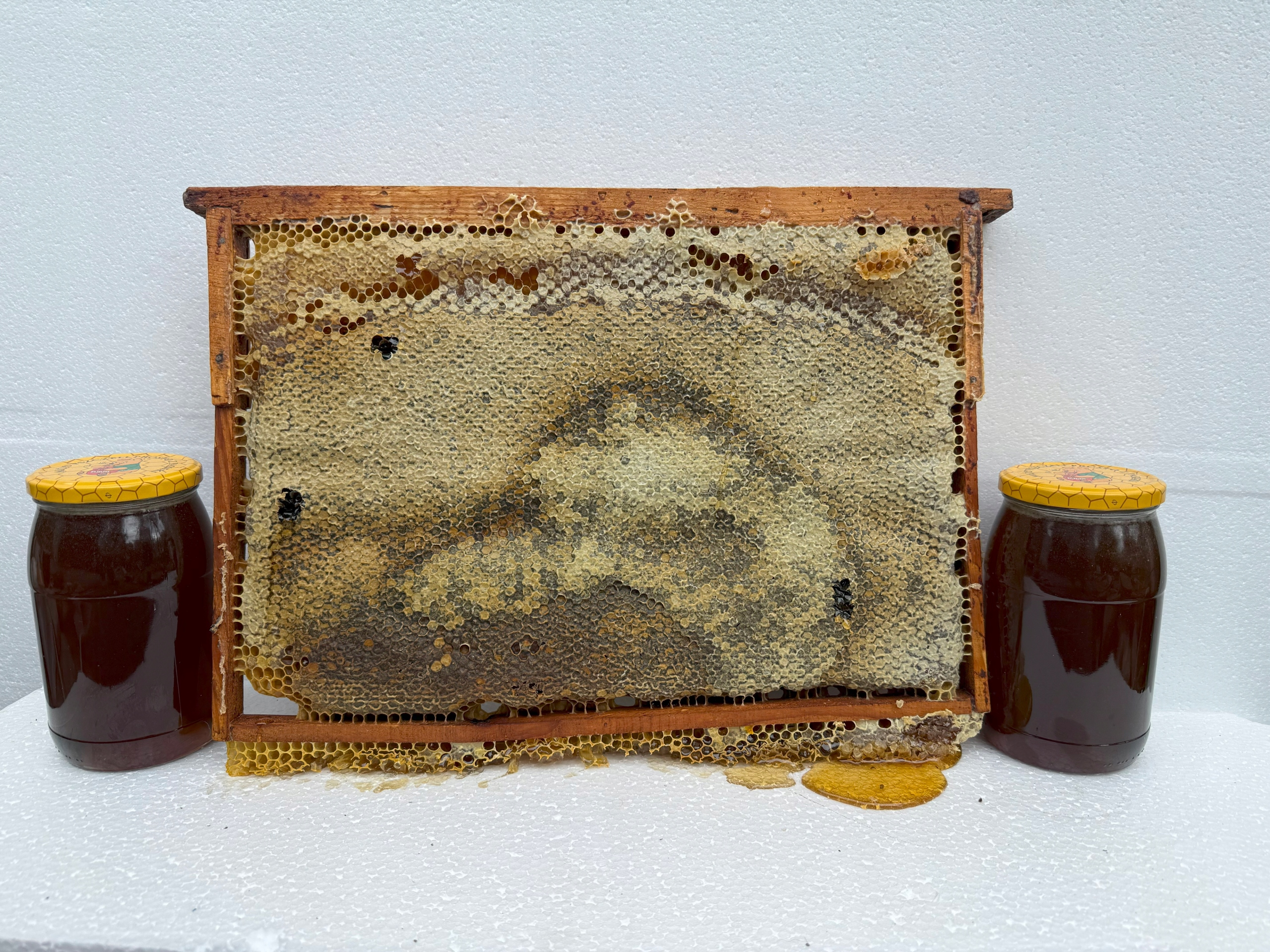 Мед мед місткістю бл. 900 мл і чиста вага 1200 г. Мед із власних апіарів, розташованих у горах Бісцаді (Ustrzyki Górne)