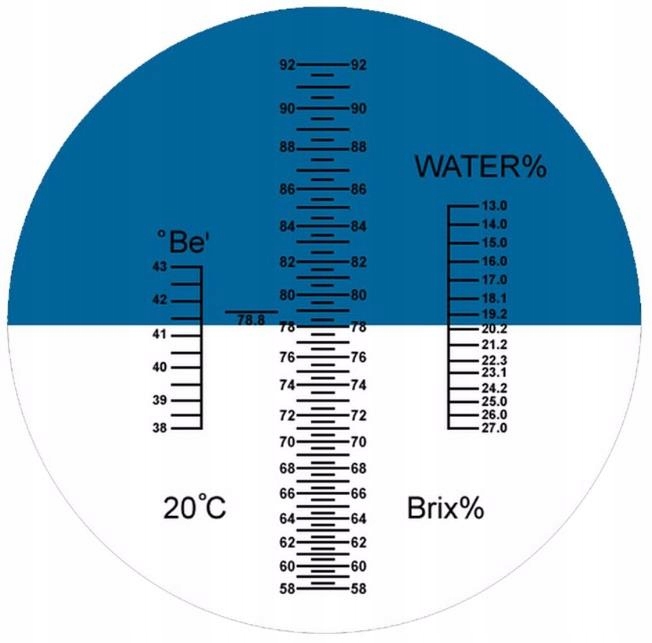 - діапазон вимірювання вмісту цукру: 58-90% ° Bx (Брікс)