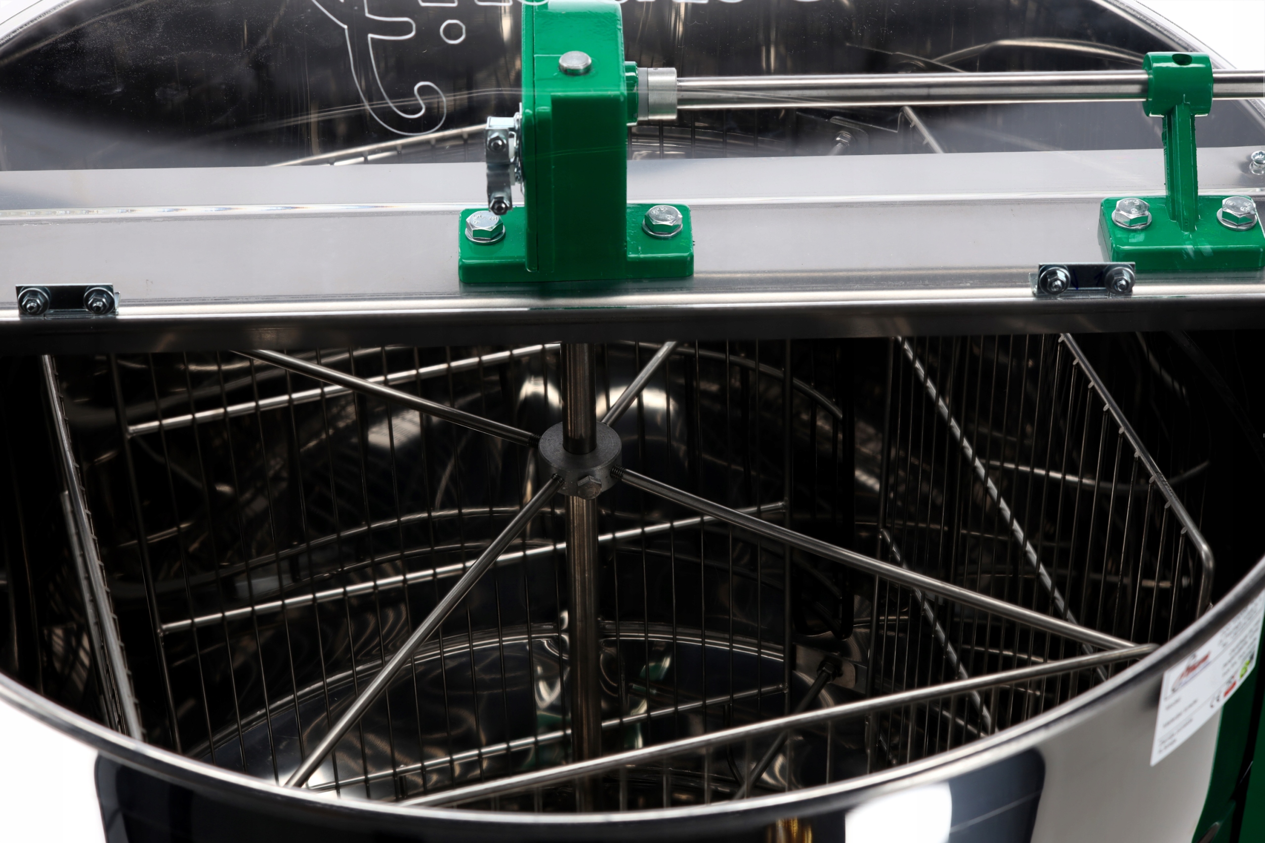 Діагональна медогонка з 4 рамками всередині барабана. Ідеально підходить для невеликих і середніх пасік. Універсальна, тому на медогонку підходять рамки: Wielkopolska, Dadant, Langstroth. Для отримання меду з бджолиних стільників використовують медогонку. Завдяки відцентровій силі мед притискається до стінки бочки, стікає на дно і виходить через заслінку. Відкрутивши одну сторону скибочок, їх необхідно перевернути та знову відкрутити.