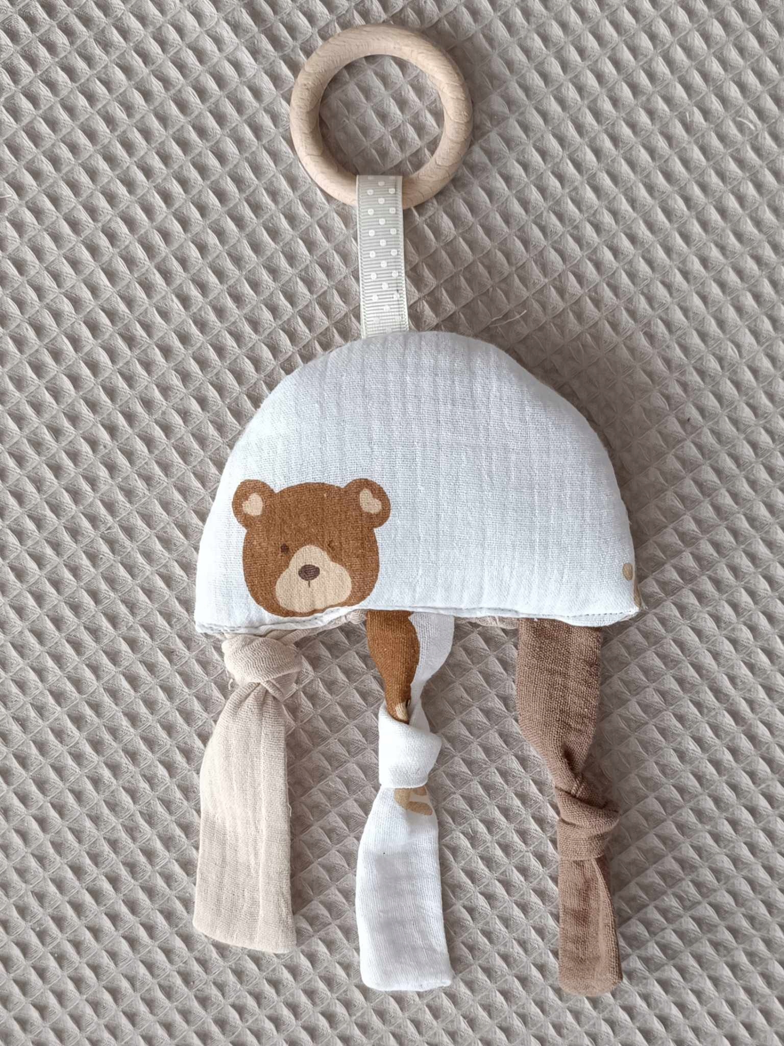 сенсорні медузи - виготовлені з матеріалів різної структури. Кулон виготовлений з мусліну, підключеного до вафлі. Він має кольорові кольорові муслінові стрічки, які можна зв'язати вузлом або вирішити, вільно висячи. Стимулює цікавість малюків і дозволяє вам займатися. Голова медуз зшила, що надає їй додаткову м'якість.