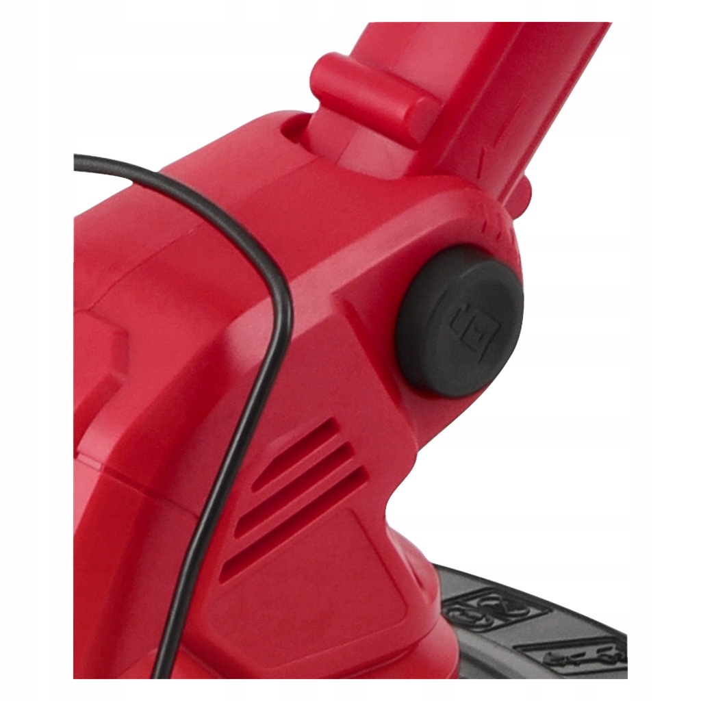голову можна нахилити однією кнопкою під кутом 90 °. Ця функція сенсаційна полегшує хребет, наприклад, при обрізанні країв газону. Коник також має регульовану допоміжну ручку та прокатну задню ручку.