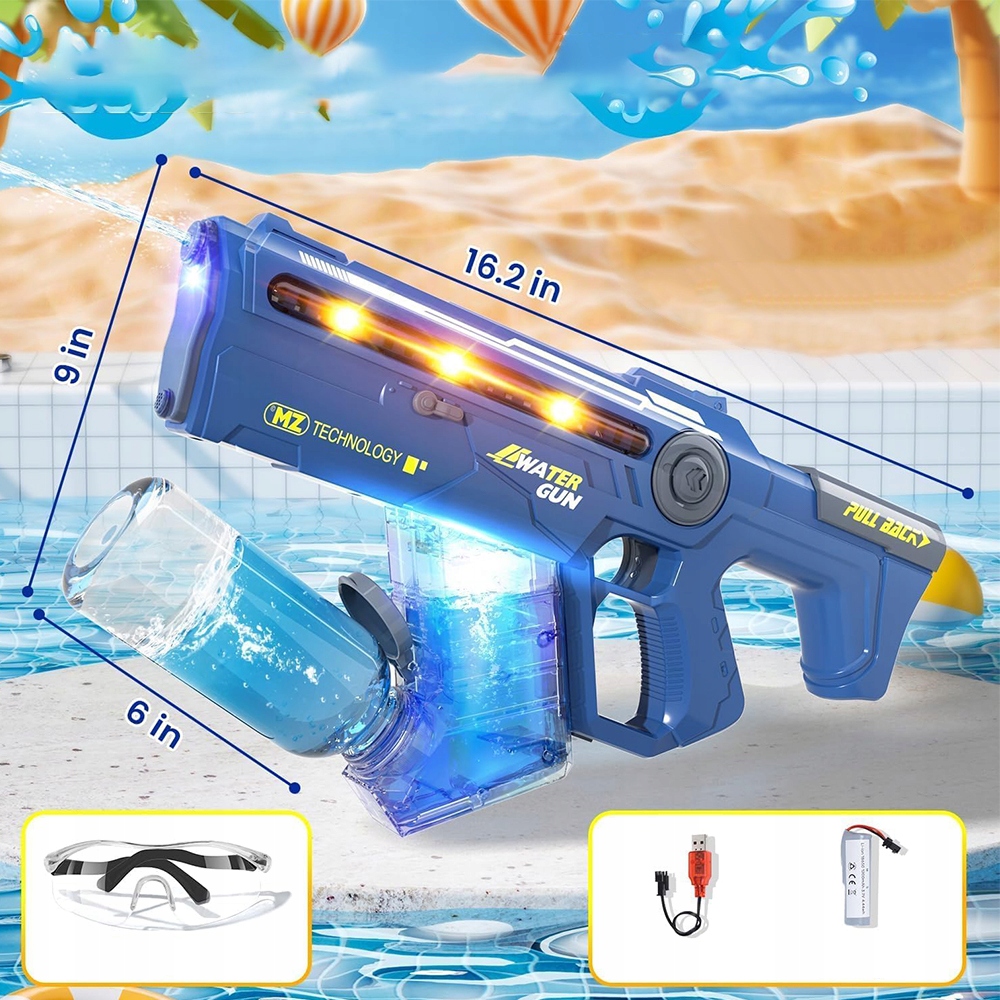 - оснащений жовтими вогнями, які рухаються з прогресом водного потоку, збільшує задоволення від гри і може негайно привернути увагу. Оснащений високогранним бака 350 мл, він може розпорошити понад 200 разів.