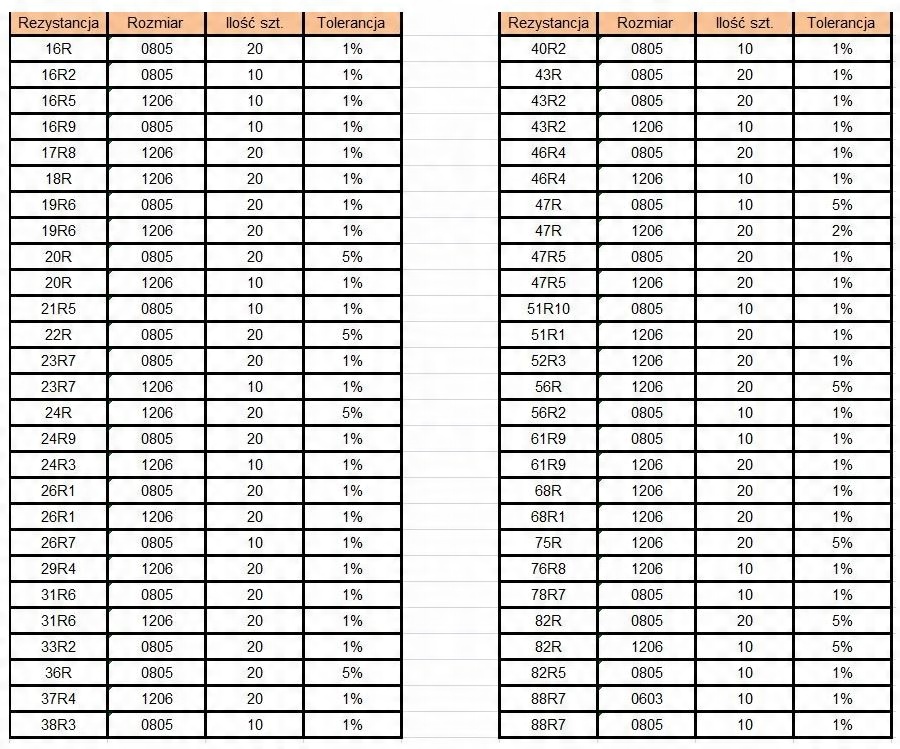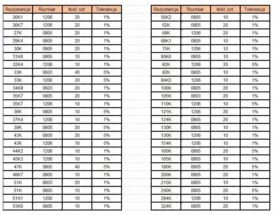 Крім того, кілька значень у розмірі 1210 та 0402 та резистивних сходів