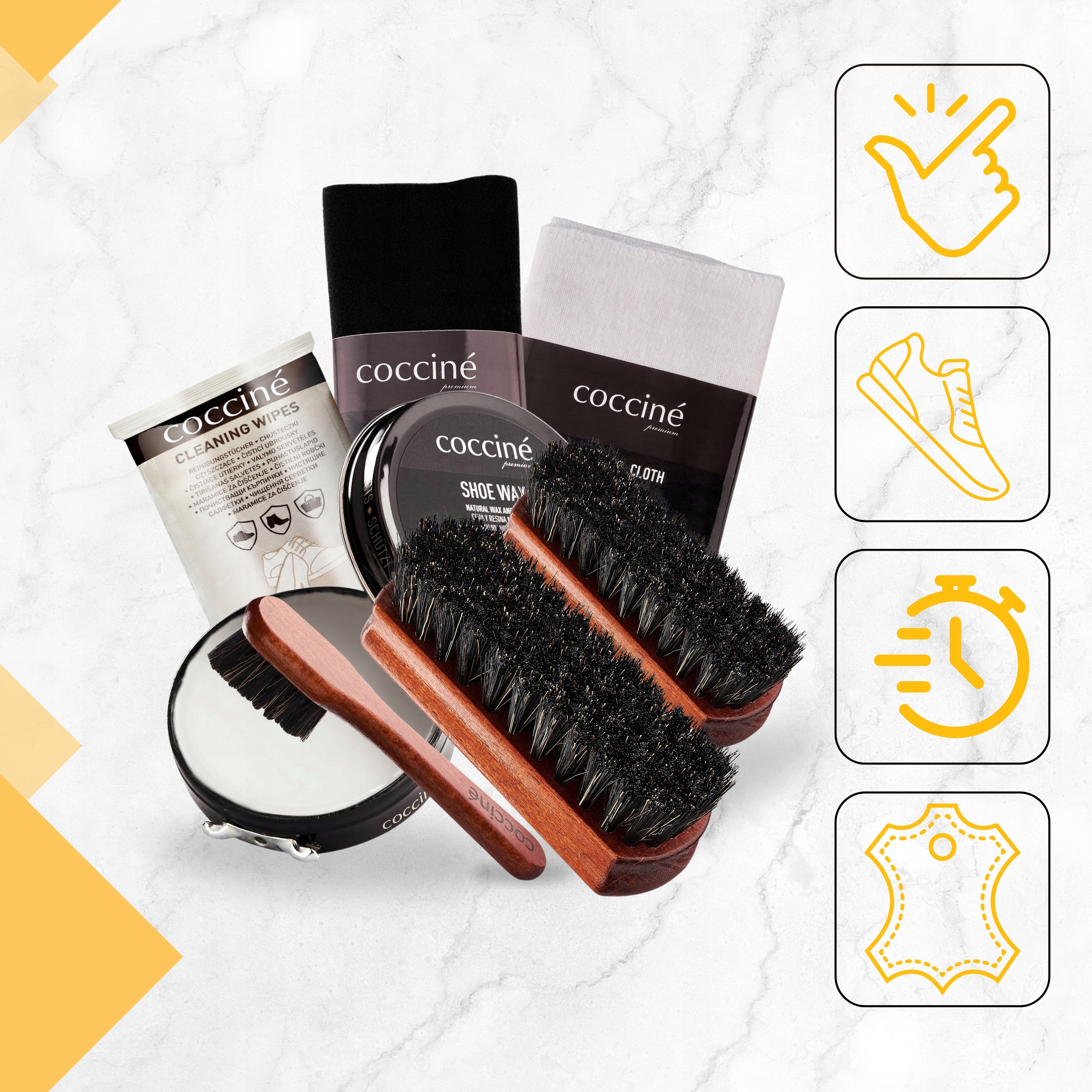 пензлик - кокцинна паста та креми з конями щетини - це практичний і довговічний інструмент, який полегшує щоденне взуття взуття. Виберіть перевірену якість бренду кокцину та подбайте про елегантний вигляд взуття простим та ефективним способом!