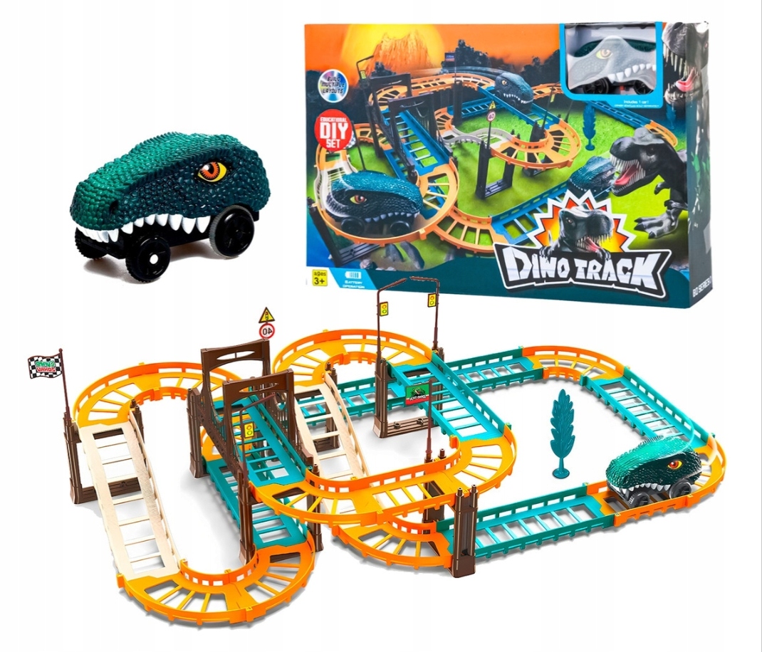 Інтерактивна гоночна траса — це унікальна іграшка, яка перенесе вашу дитину в подорож, повну пригод та емоцій. Завдяки мотиву динозавра ваша дитина відчує себе в доісторичному світі, що ще більше розвиває її уяву та спонукає до ігор.