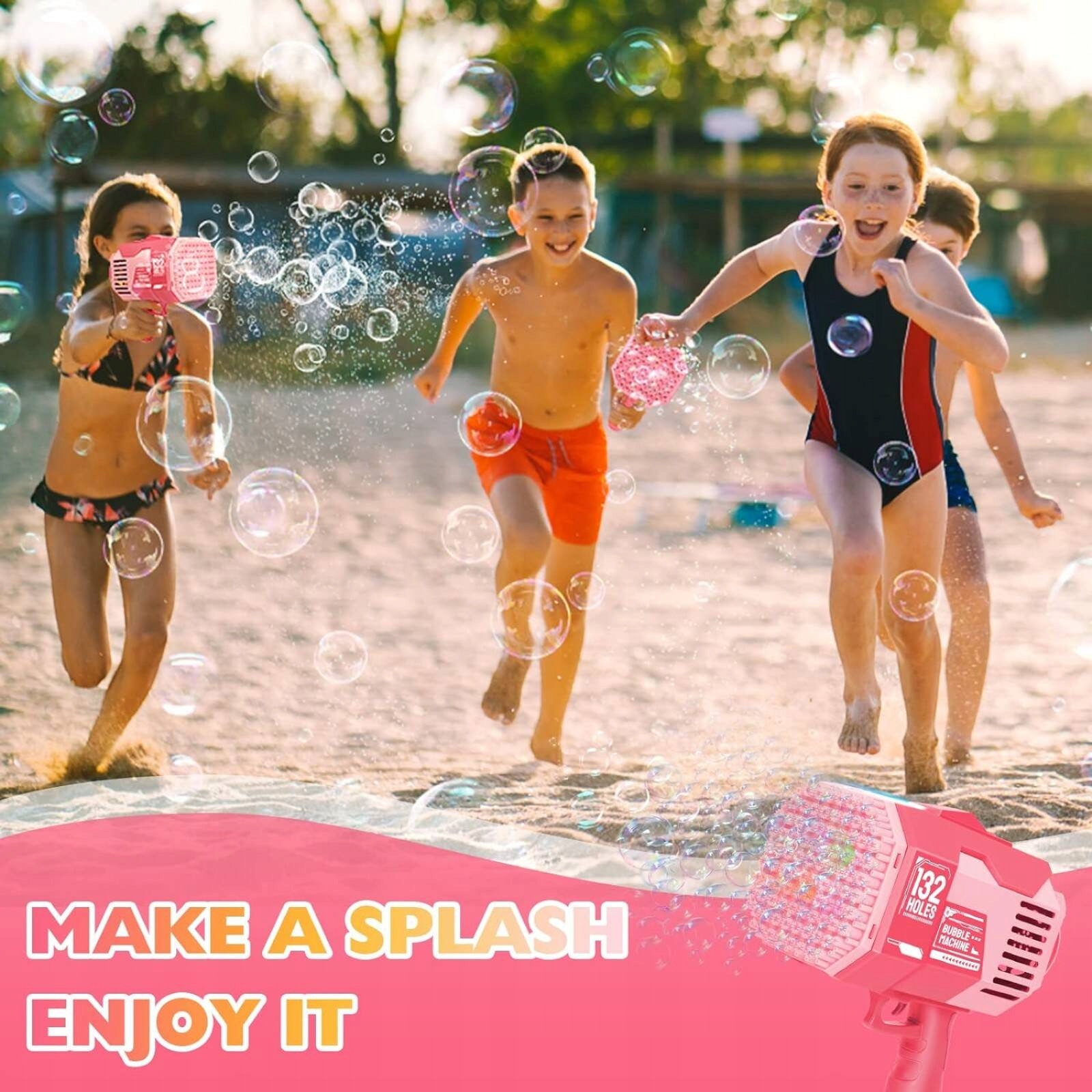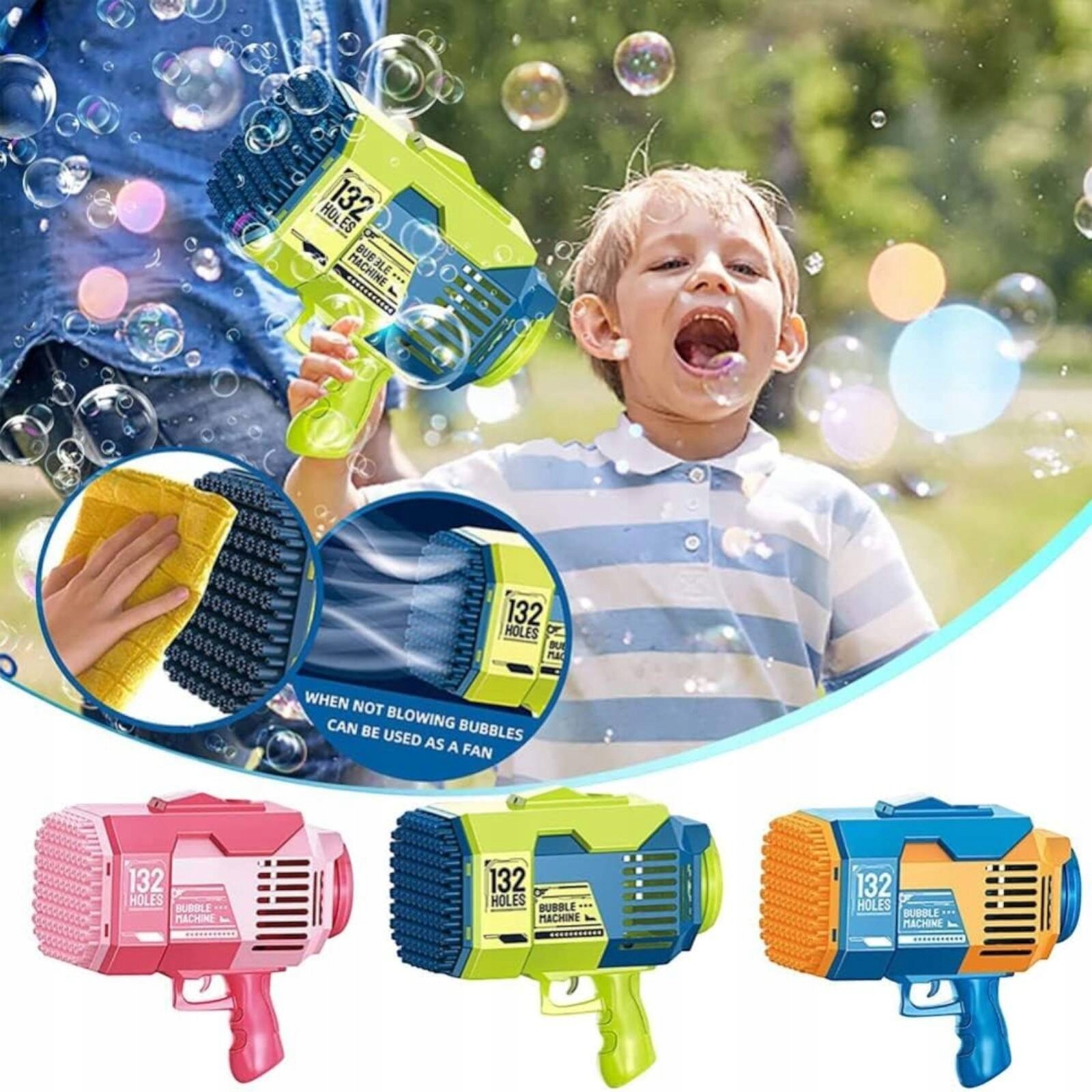 Ми запрошуємо вас у світ нескінченних розваг із нашим пістолетом для мильних бульбашок, який завдяки 132 отворам створює дивовижний ефект бульбашкового дощу. Ідеальне доповнення до сімейних свят, пікніків та будь-якої нагоди, щоб додати трохи магії!