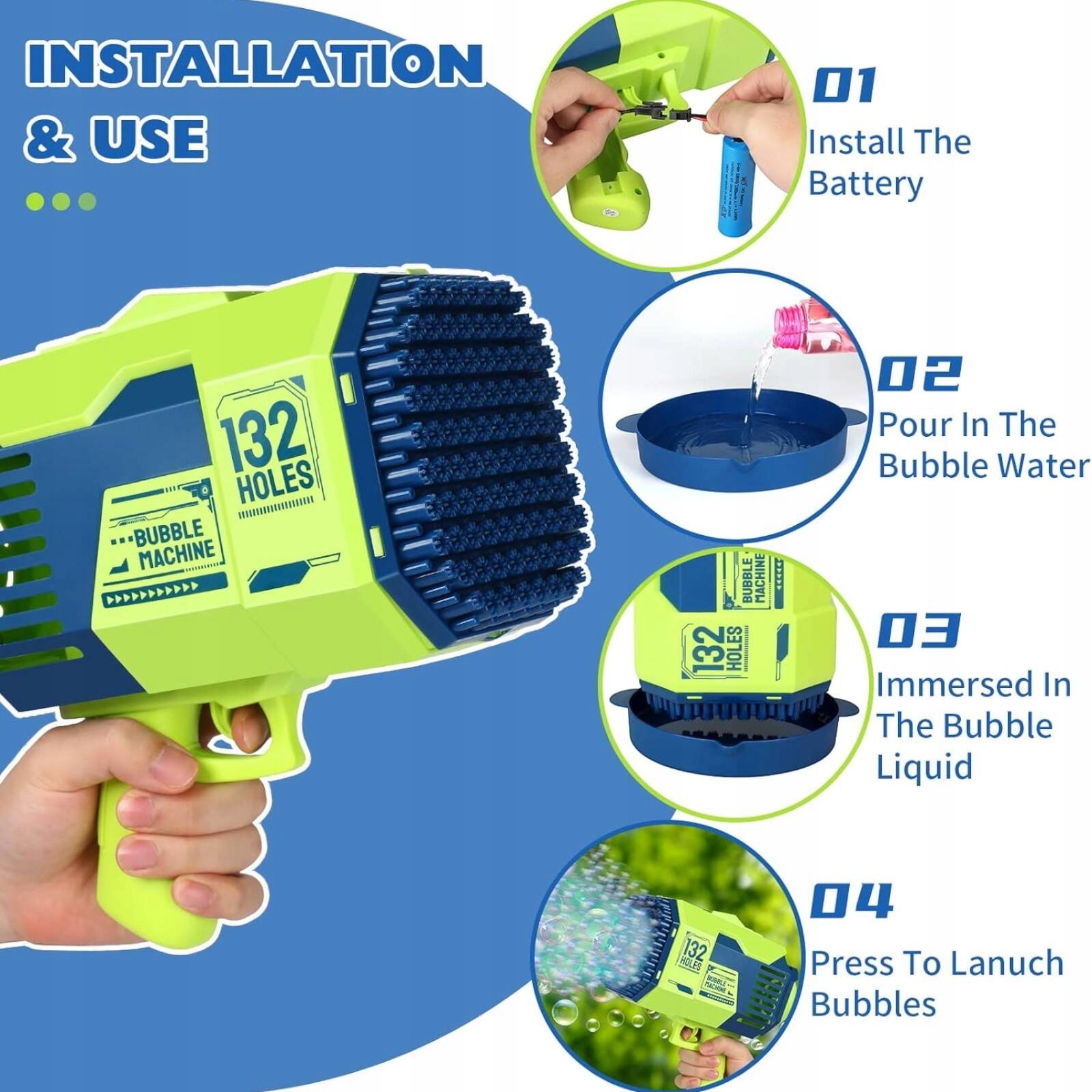 - Пистолет для бульбашок із 132 отворами для видування бульбашок.