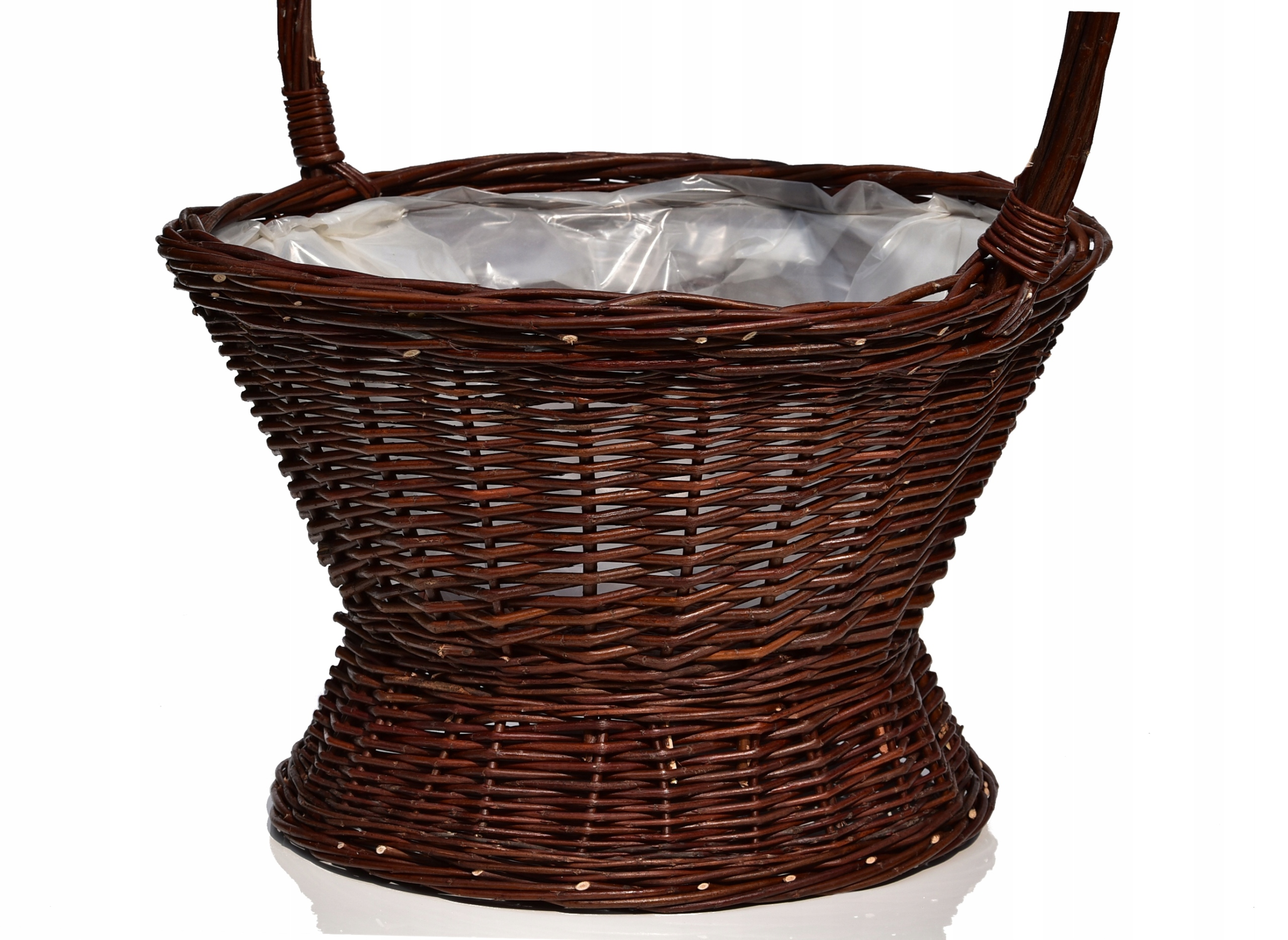 Масивний і міцний кошик для квітів з високою ручкою - всередині покритий плівкою. Кошик з некореної лози - типовий для саду, квіткових композицій, як прикраса для магазинів, ресторанів, пабів або терас.