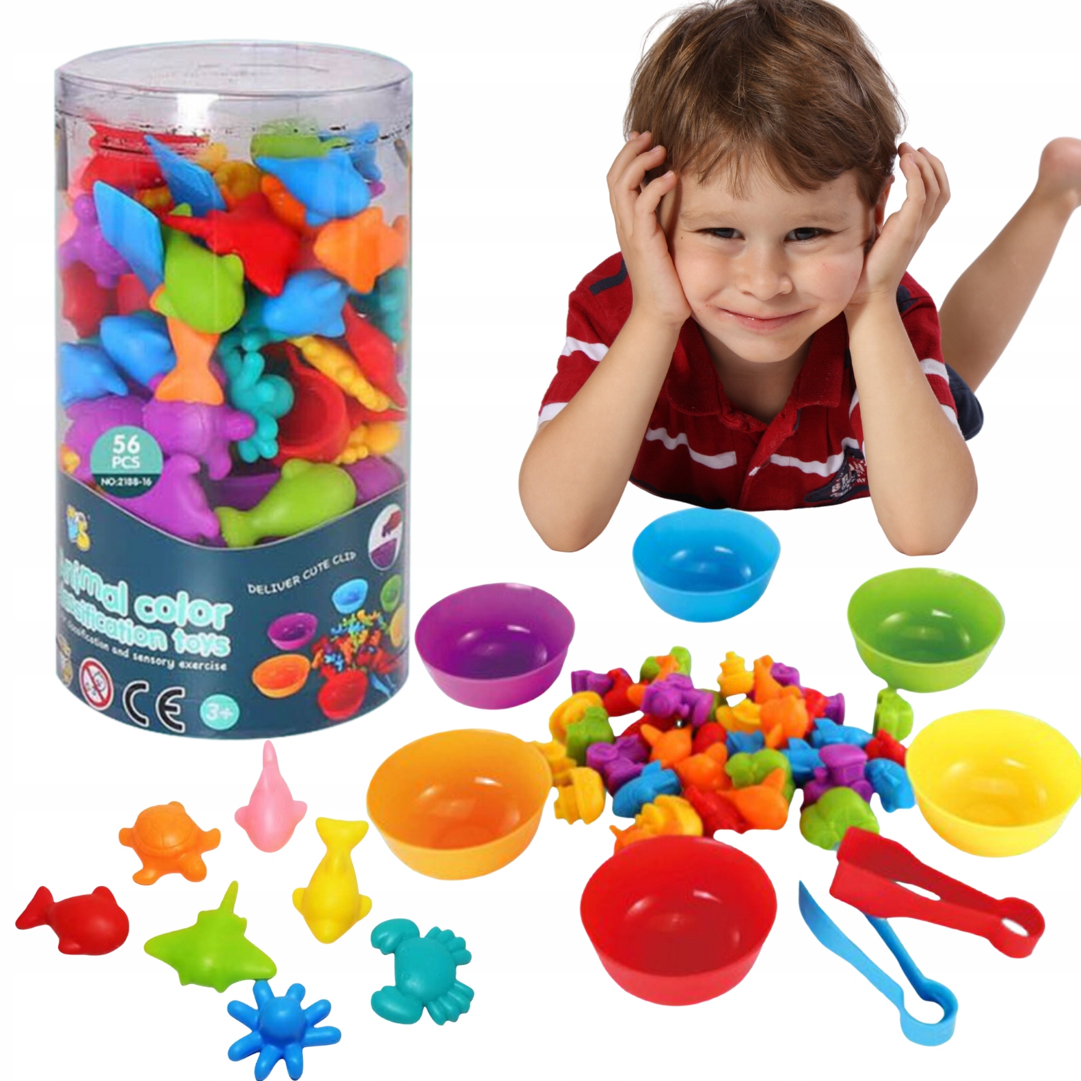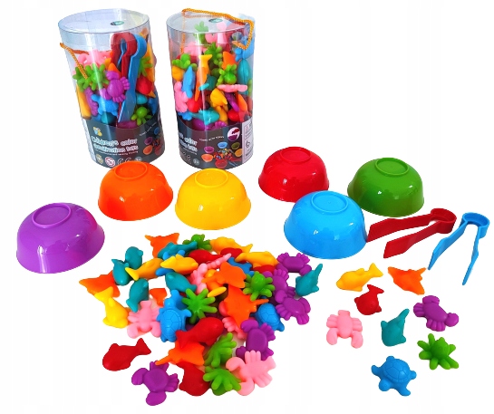 ❇️ Дитина отримує спеціальний захват, за допомогою якого вона зможе хапати та переміщати тварин у відповідні чашки. Мета гри - помістити кожну тварину в чашку одного кольору. Це вимагає від дитини зосередженості, координації рухів і навичок розпізнавання кольорів.