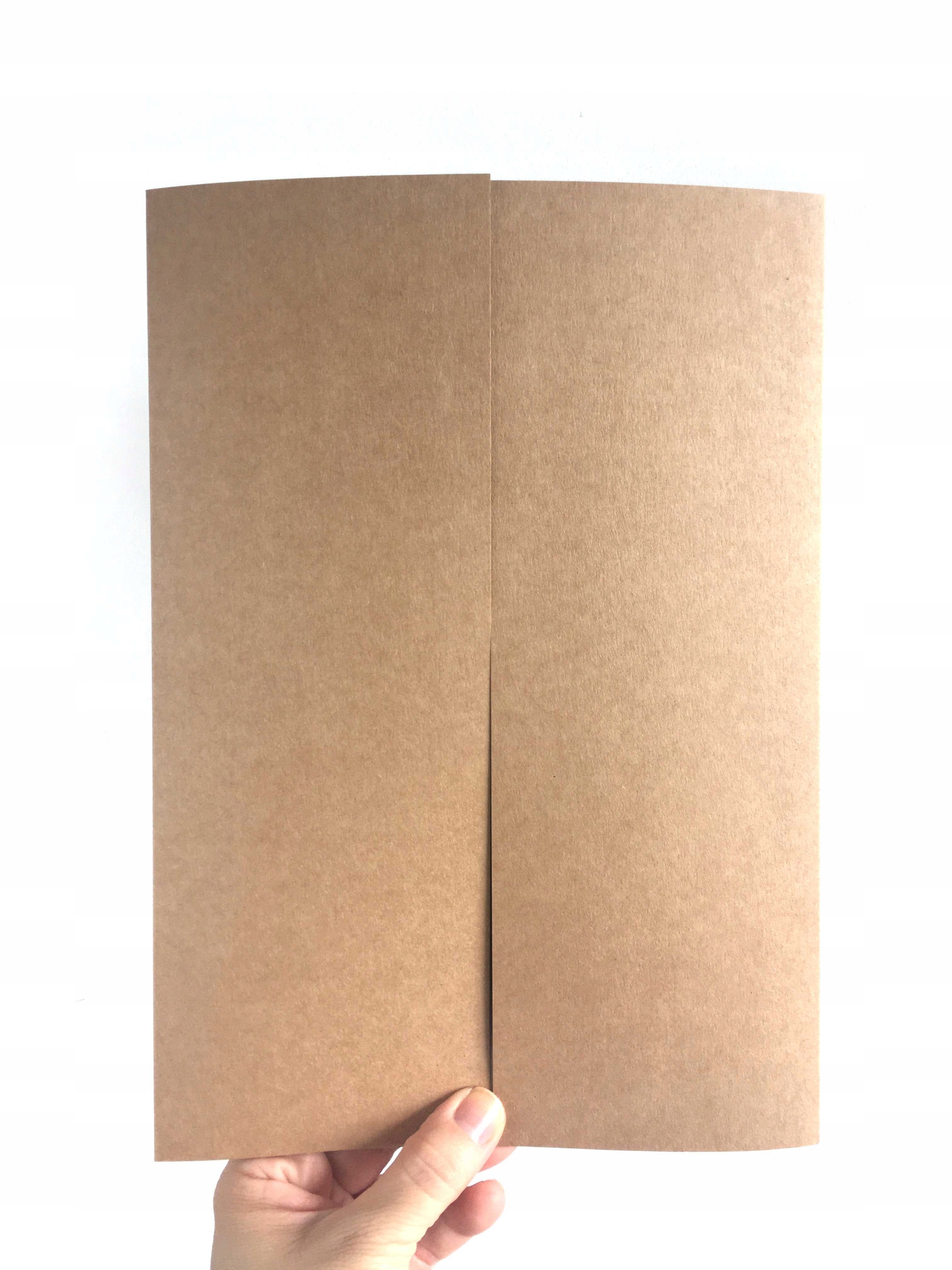 - 1 папка, складена до формату А4- 2 аркуші А4 - складається з 2 "половинок" формату А4 (розмір після складання прибл. 21x29,7 см) з екологічного паперу KRAFT вагою приблизно 250 г