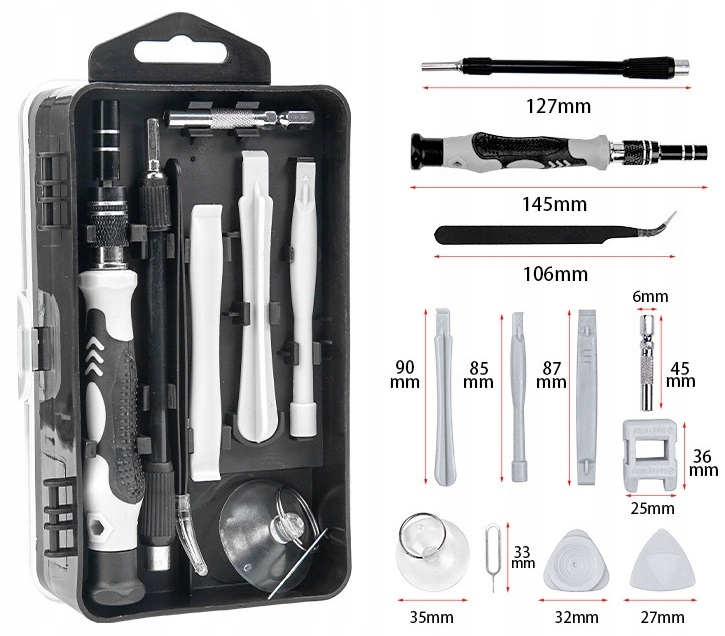 Набір можна використовувати для звичайного ремонту таких приладів, як телевізори, кондиціонери, вентилятори, холодильники, автомобілі, дрони, окуляри, годинники, пилососи тощо. Він також необхідний для розбирання та обслуговування мобільних телефонів, цифрових камер, годинників, окулярів, ноутбуків, ноутбуків та ігрових приставок.