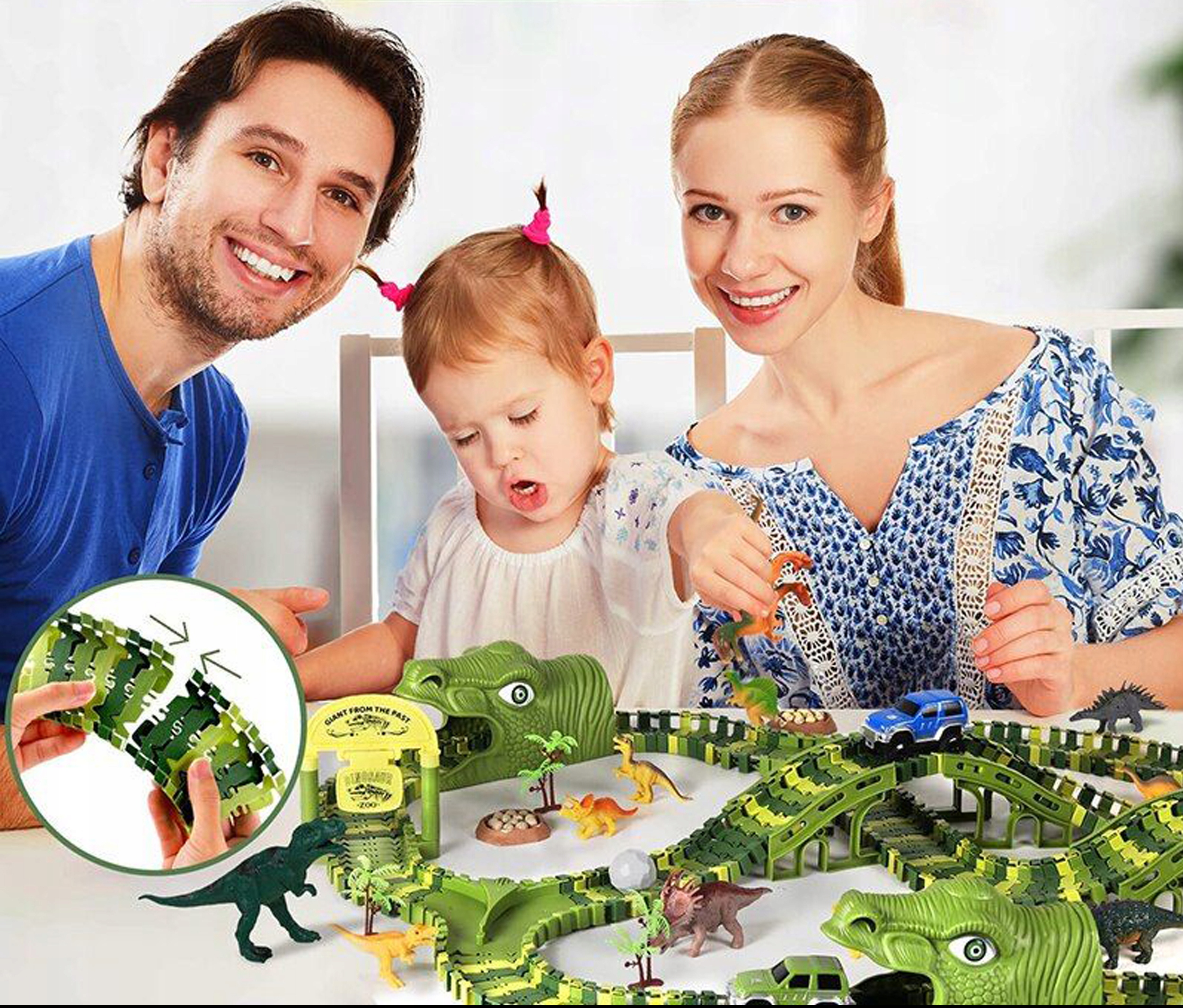 Набір складається з 200 елементів треку та 30 додаткових елементівякі роблять розваги якомога веселішими та дозволяють побудувати велику доріжка з цікавими ділянками b> для гри та пейзажем, що нагадує справжній світ доісторичних динозаврів.Ваша дитина почуватиметься у справжньому парку динозаврів.