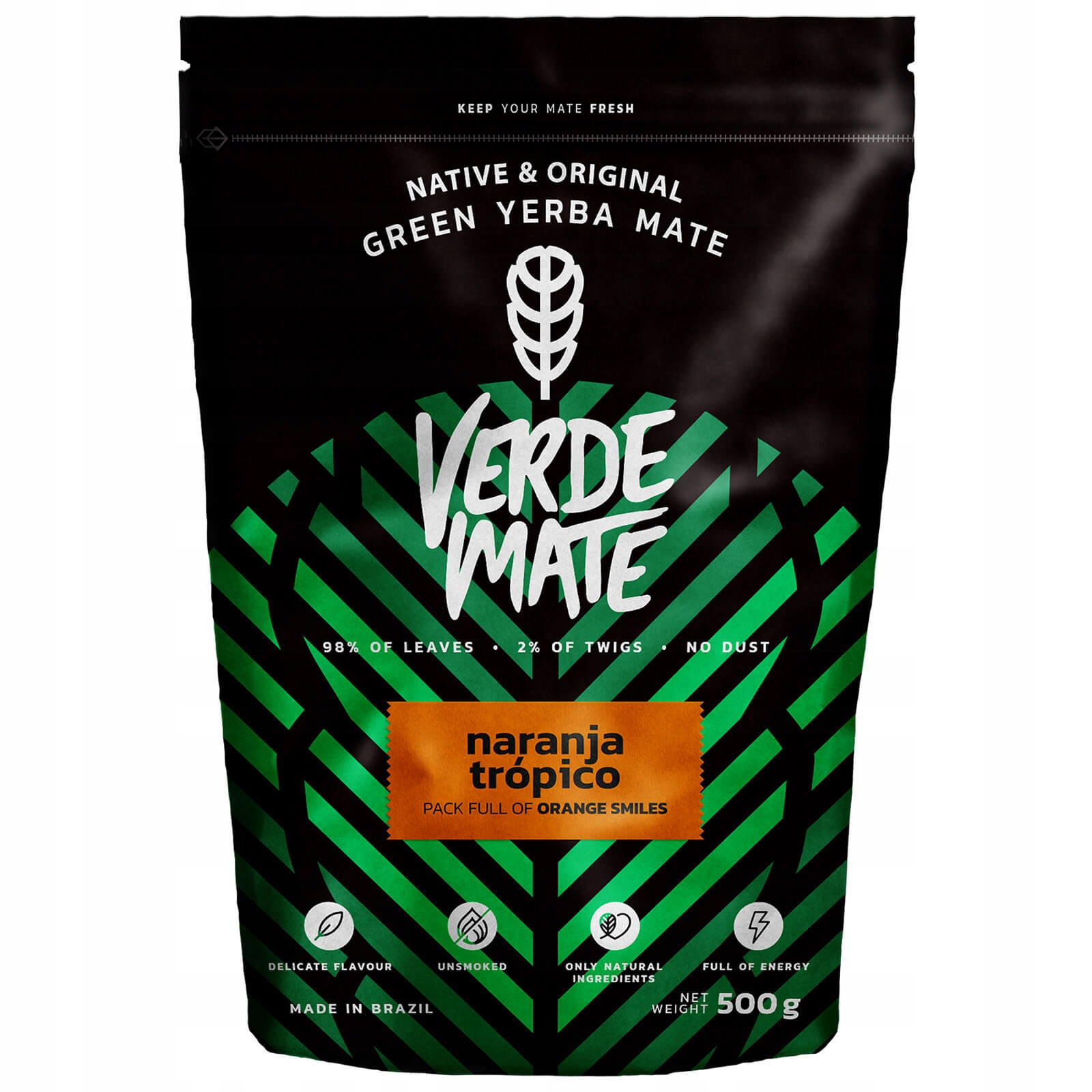 Verde Mate Green Naranja Tropico - це смачне мате йерба з освіжаючим цитрусовим смаком апельсинової цедри, який чудово поєднується з благородною зеленню в'яленої падуб.. Ідеальна гармонія та сила стимуляції!