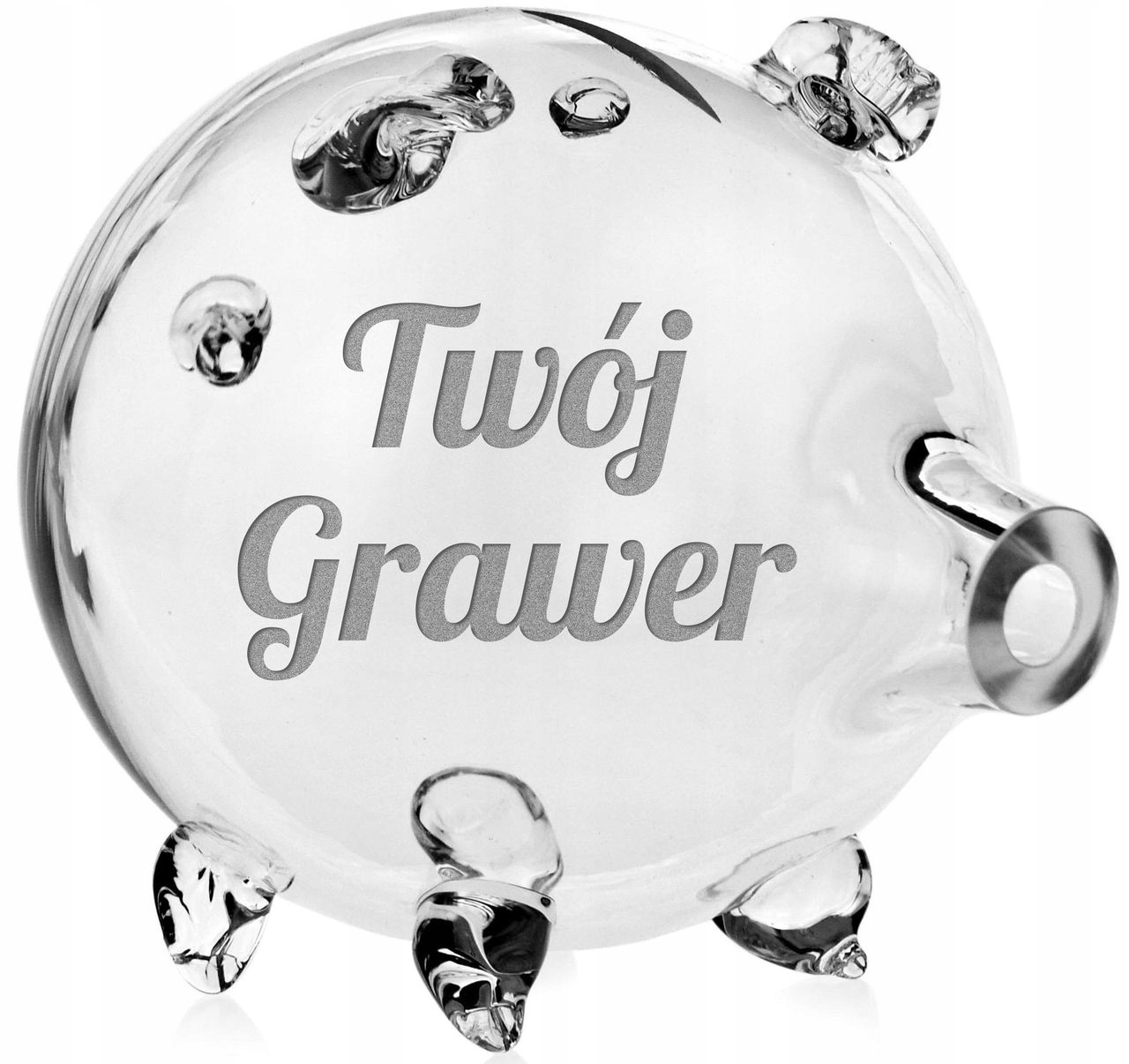 НАЙБІЛЬШИЙ доступний на Allegro! Скляна скарбничка ручної роботи БЕЗКОЛІРНА СВИНЯ з індивідуальним гравіюванням