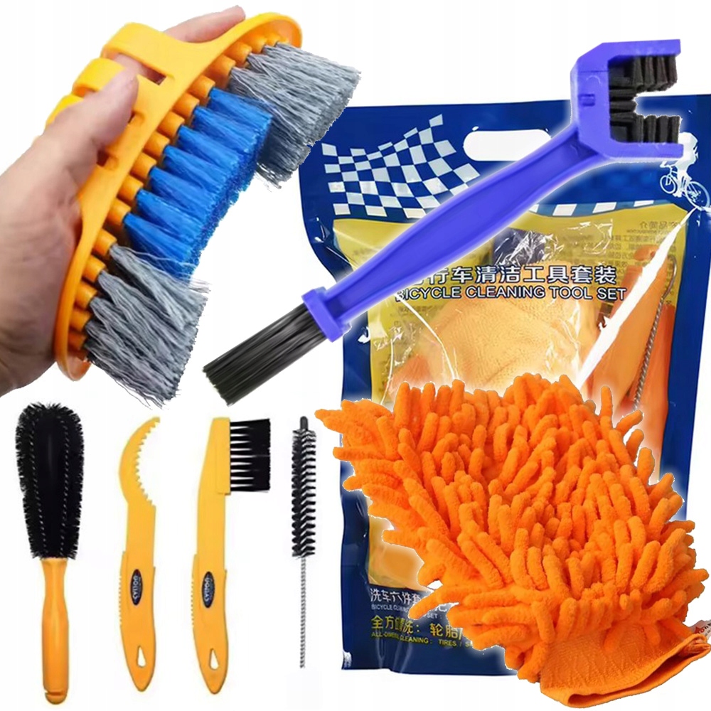 MEGA ZESTAW DO CZYSZCZENIA MYCIA ROWERU ŁAŃCUCHA PIELĘGNACJI 7 ELEMENTÓW