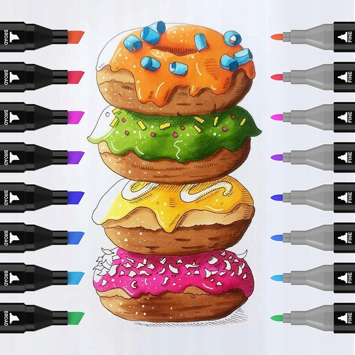 Спиртові фломастери дозволяють точно малювати та малювати, що особливо важливо для людей, яким вони потрібні велика точність у своїй художній роботі. Крім того, кольори інтенсивні та яскраві, що додає глибини вашим дизайнам.