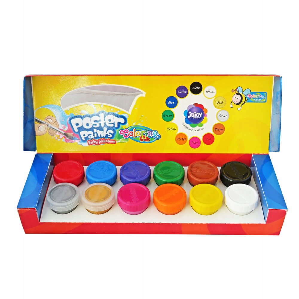 - Фарби для плакатів Colorino є фарбами на водній основі. Вони мають яскраві, виразні кольори.