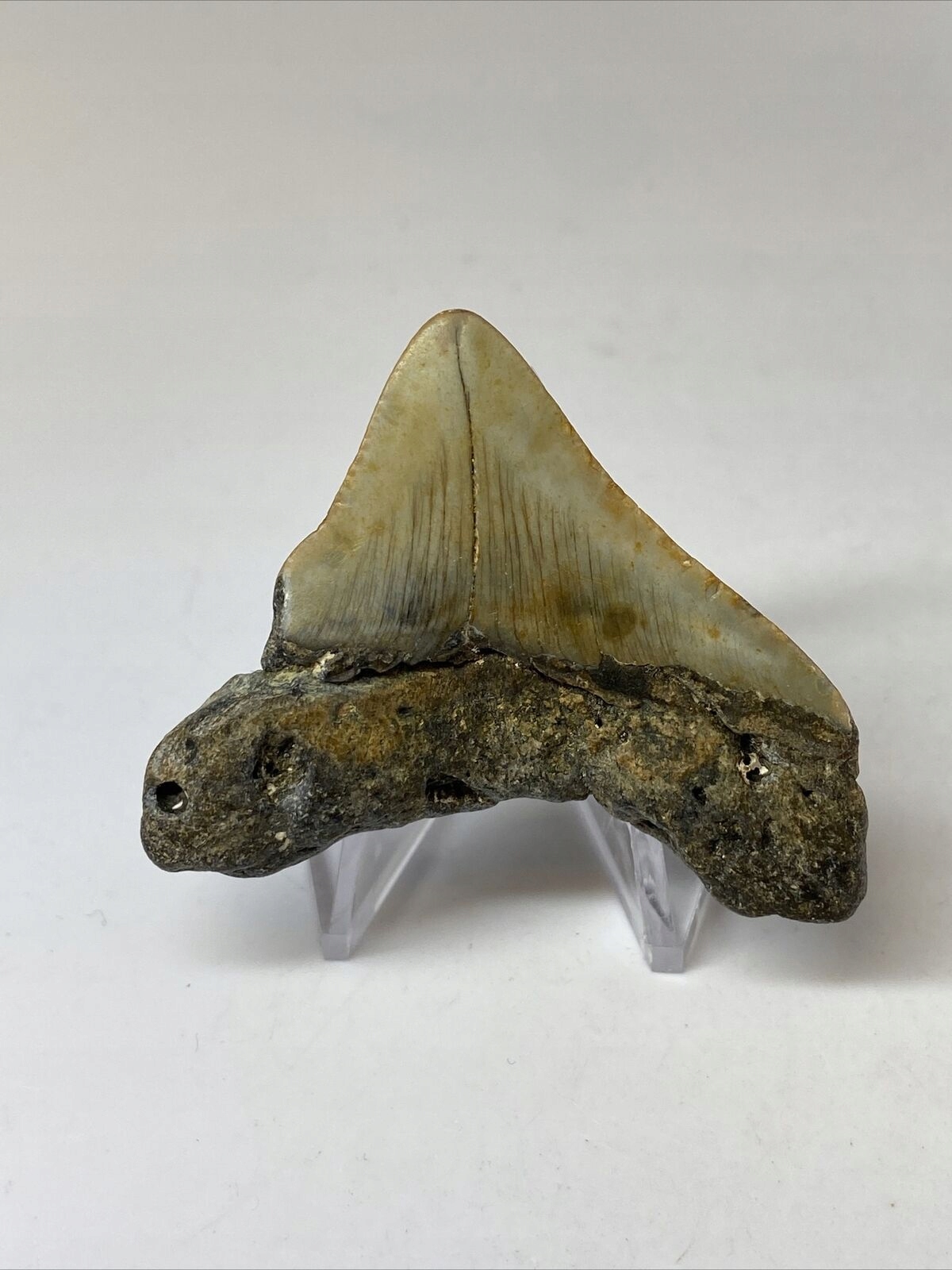 Продається естетично збережений зуб з коренем. Гострі краї коронки та всього кореня.