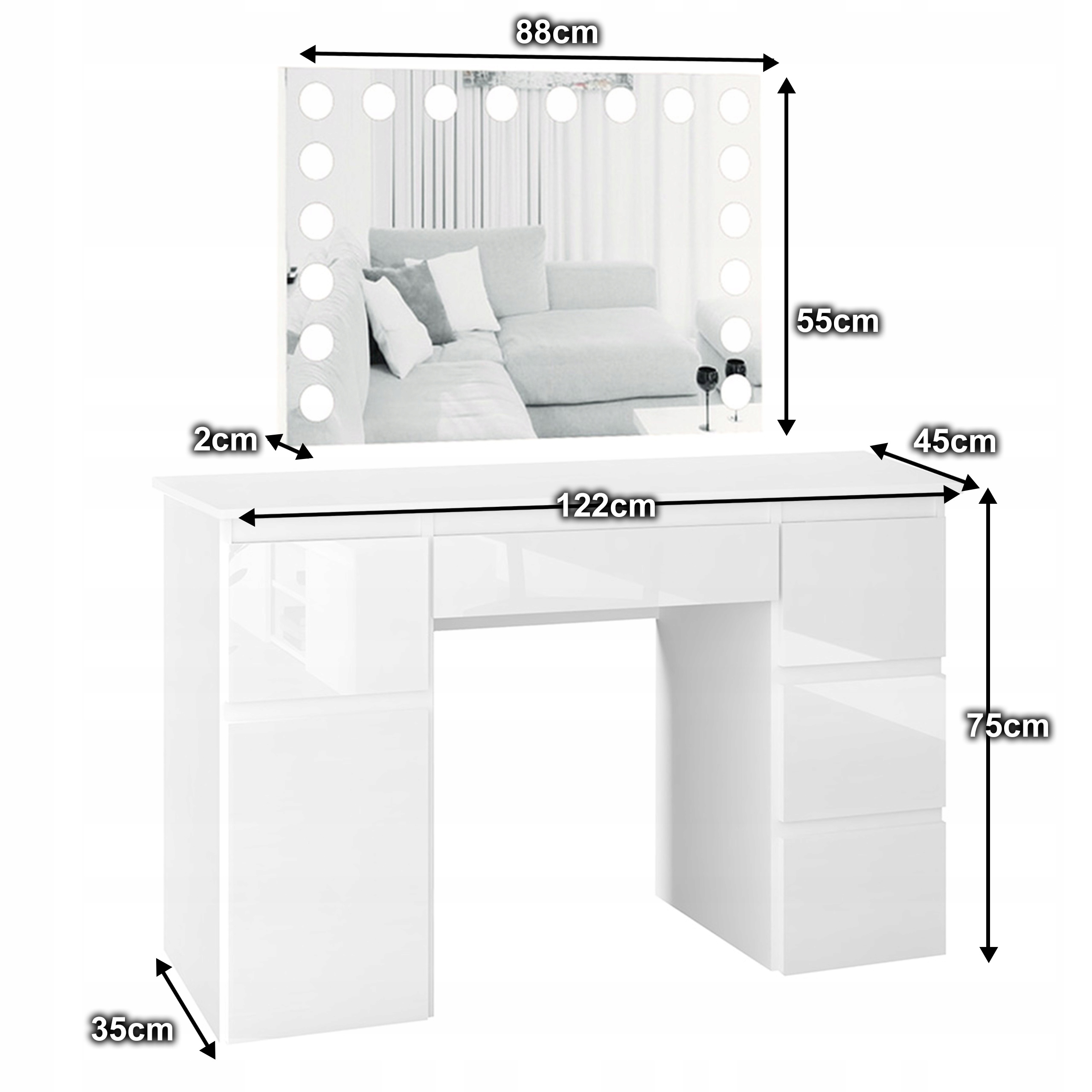 Просматривая «MEGAN B2 ТУАЛЕТНИЙ СТОЛИК ВІЗАЖ ДЗЕРКАЛО З LED-ПІДСВІТЛЕННЯМ ЯЩИКИ ГЛЯНЦЕВА ШАФА», вы можете быть уверены, что данный товар из каталога «Туалетные столики» будет доставлен из Польши и проверен на целостность. В цене товара, указанной на сайте, учтена доставка из Польши. Внимание!!! Товары для Евросоюза, согласно законодательству стран Евросоюза, могут отличаться упаковкой или наполнением.