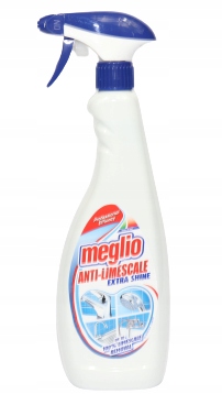 Засіб для видалення накипу Meglio не тільки ефективно видаляє 100% вапняного нальоту з вашої ванної кімнати, але також ефективно видаляє бруд і залишки мила, надаючи поверхням блиск.