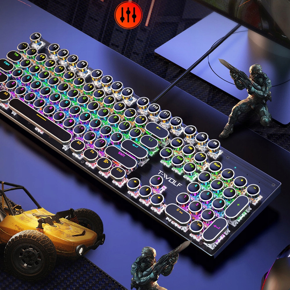 Ігрова клавіатура T-Wolf T75 була розроблена з урахуванням геймерів. Продукт оснащений круглими механічними клавішами з підсвічуванням у ретро-стилі, що значно покращує комфорт і ігровий досвід, а також забезпечує високу чутливість. Маркування кнопок виконано за допомогою лазерної технології, що дозволяє клавіатурі залишатися розбірливою навіть після тривалого використання. Сучасний унікальний дизайн робить пристрій ідеальним доповненням до ігрової станції, а також добре працюватиме з комп’ютерами в офісі чи вдома. Клавіатура має дев'ять режимів підсвічування, які змінюються комбінацією клавіш FN+INS. Він виготовлений з високоякісних матеріалів, стійких до статичної електрики та розливів. Він підключається за допомогою довгого, посиленого USB-кабелю.