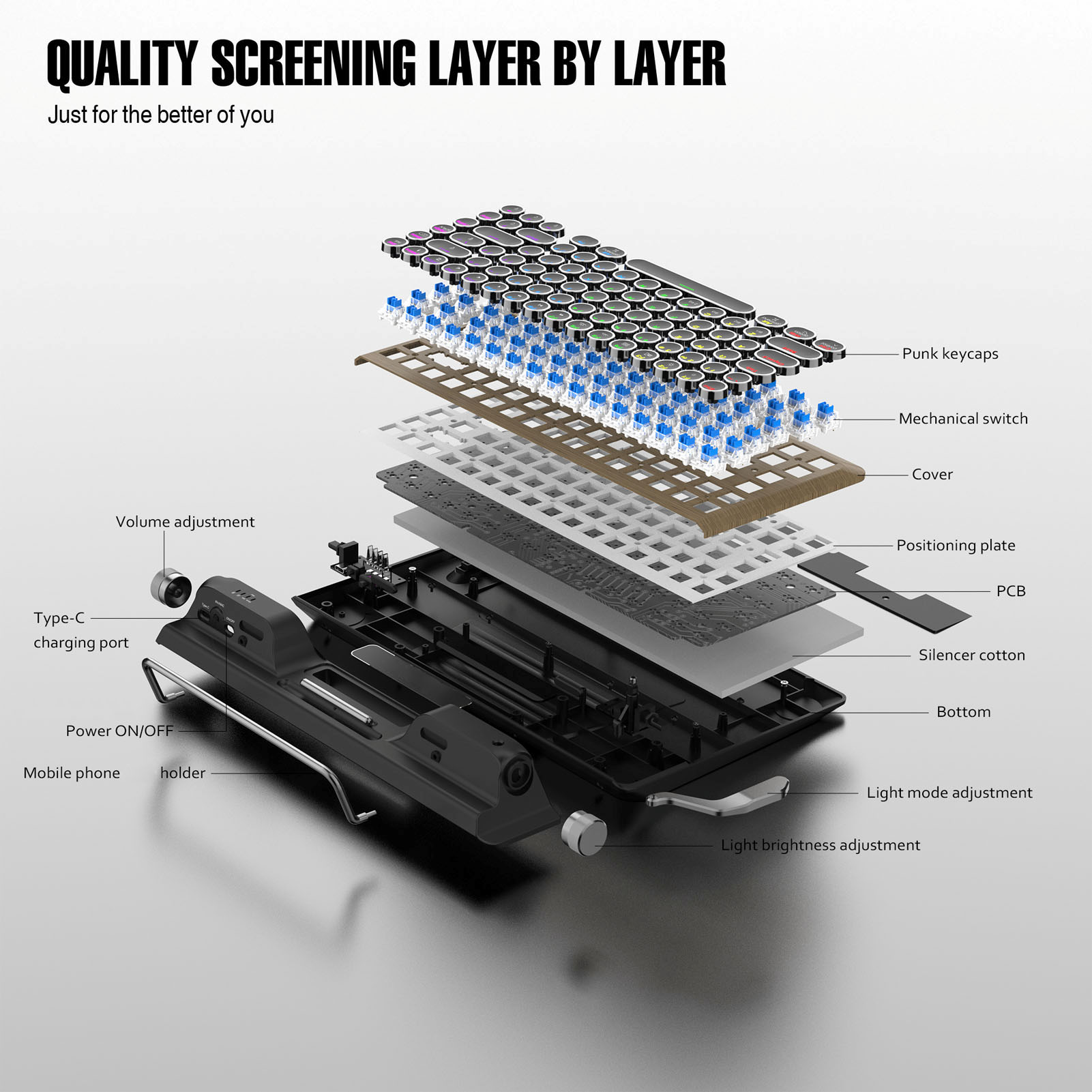 5. Механічна клавіатура Multi Connect: ця клавіатура служить не лише як обчислювальний пристрій, але й як бездротова клавіатура 2.4G із приймачем 2.4G, що забезпечує зручне підключення незалежно від типу підключення.