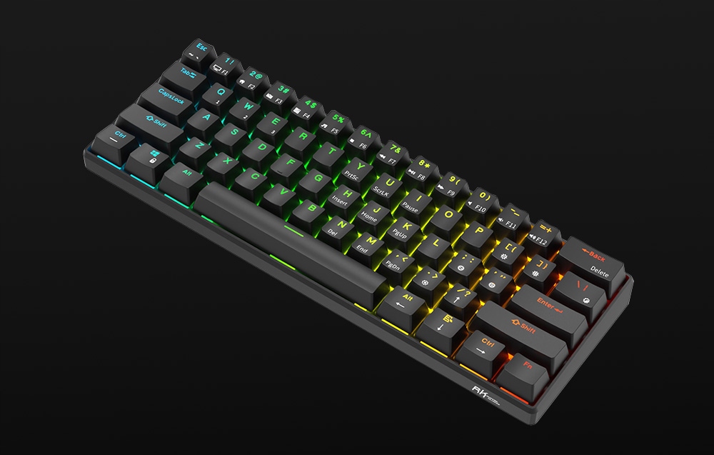 Клавіатура Royal Kludge RK61 ідеально відповідає вашій ігровій позиції! Він оснащений барвистою підсвічуванням RGB, яка пропонує цілих 14 режимів роботи. Завдяки цьому ви можете адаптувати його до своїх уподобань, створюючи унікальні освітлювальні ефекти під час роботи чи гри. Його невеликий дизайн робить його підходящим на кожному столі, залишаючи вам більше місця для своїх проектів.