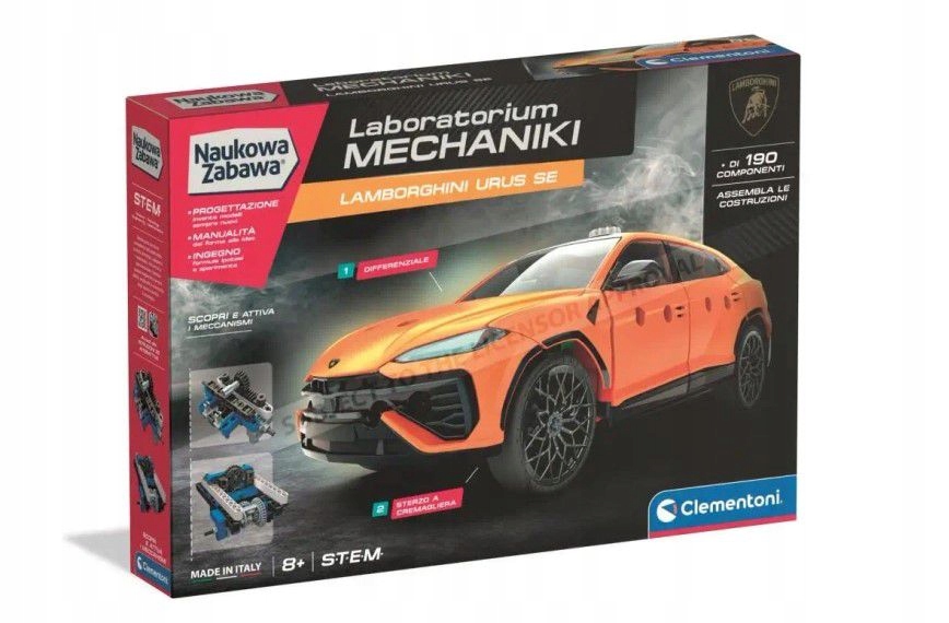 Відкрийте МЕХАНІЧНУ ЛАБОРАТОРІЮ - LAMBORGHINI URUS 50246 CLEMENTONI та перенесіться у світ інженерії та механіки! Створіть свій власний вражаючий Lamborghini Urus, який вражає не лише зовнішнім виглядом, але й конструкцією. Це ідеальна розвага та навчання в одному!