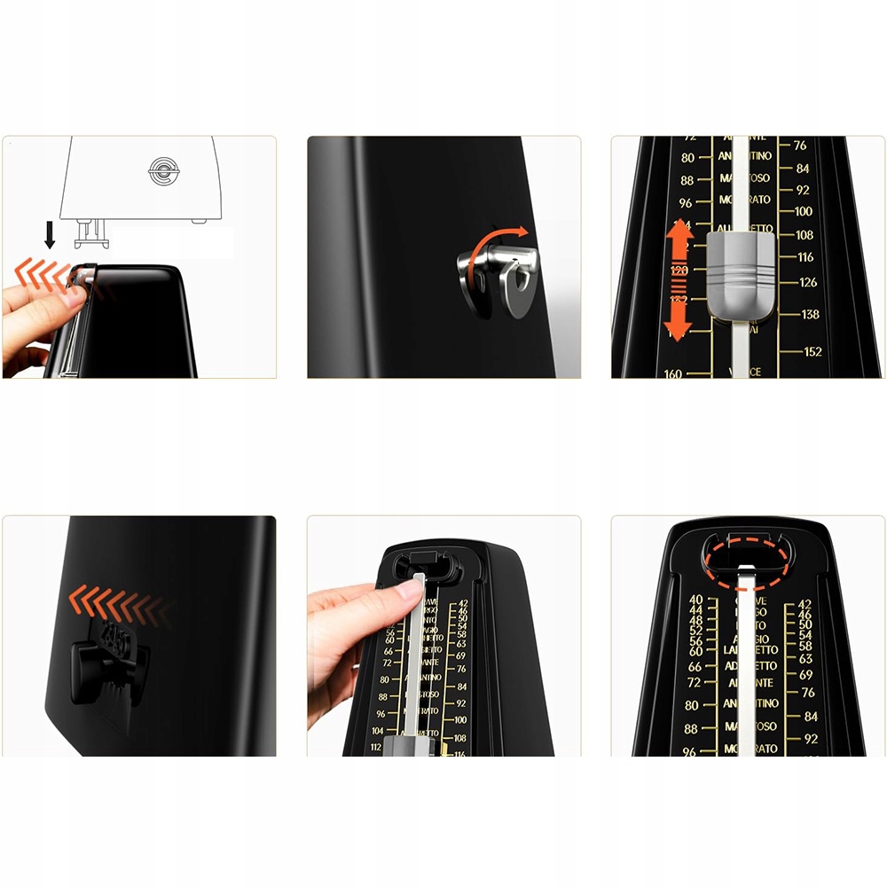 Ідеально підходить як для студентів, так і для досвідчених музикантів. Знявши прозору пилозахисну кришку та замок, просто заведіть механізм, виберіть потрібний ритм і темп, перемістіть маятник вгору або вниз, щоб відрегулювати темп, а потім натисніть важіль човника. Пориньте у світ музики, щоб покращити та розвинути своє відчуття ритму та музичний талант.