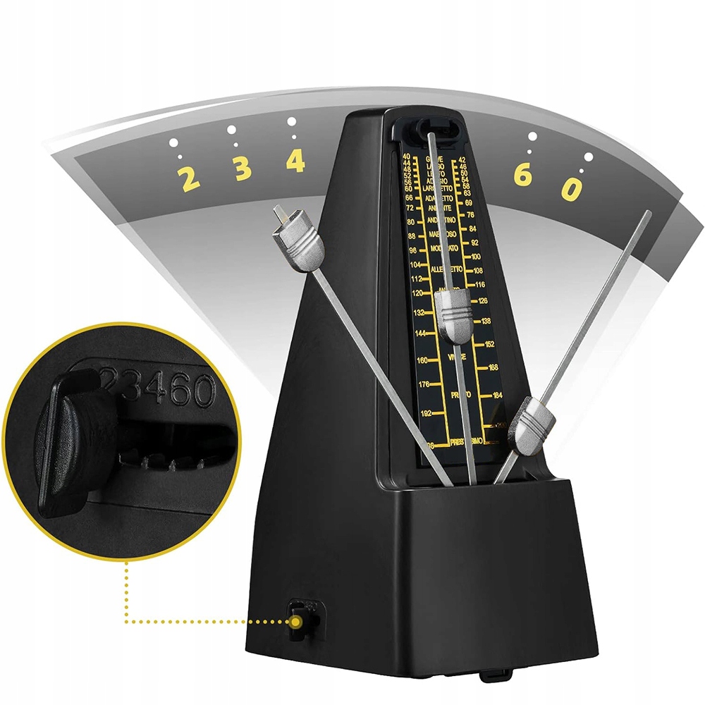 Цей механічний метроном пропонує широкий діапазон темпів. Переміщаючи гирю на маятнику, можна легко регулювати швидкість від 40 до 208 ударів на хвилину. Ви також можете встановити відповідні цифри 2, 3, 4, 6 і 0 ("0" означає відсутність дзвоника), щоб адаптувати структуру такту до різних музичних стилів - класики, джазу, поп-музики тощо.