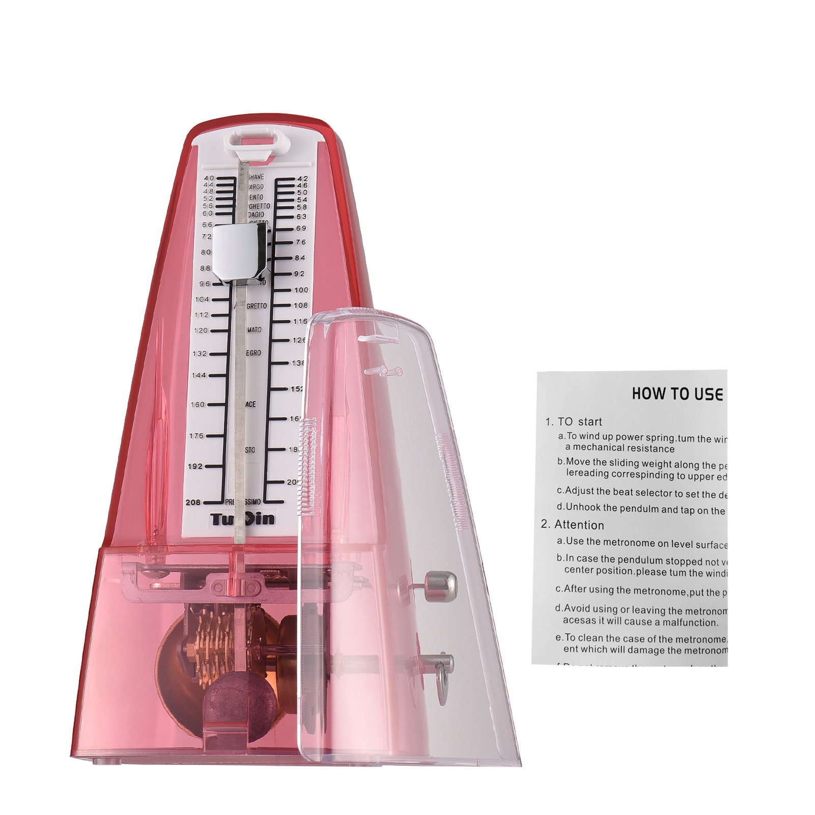 4. 【Портативний і легкий】: наш прозорий металевий метроном, розроблений з урахуванням портативності, легкий і компактний, тому його легко носити та зберігати. Він ідеально поміщається в будь-який футляр або сумку для інструментів, дозволяючи брати його з собою куди завгодно. Незалежно від того, чи є ви професійним музикантом чи новачком, наш метроном стане вашим надійним компаньйоном для сесій або виступів.