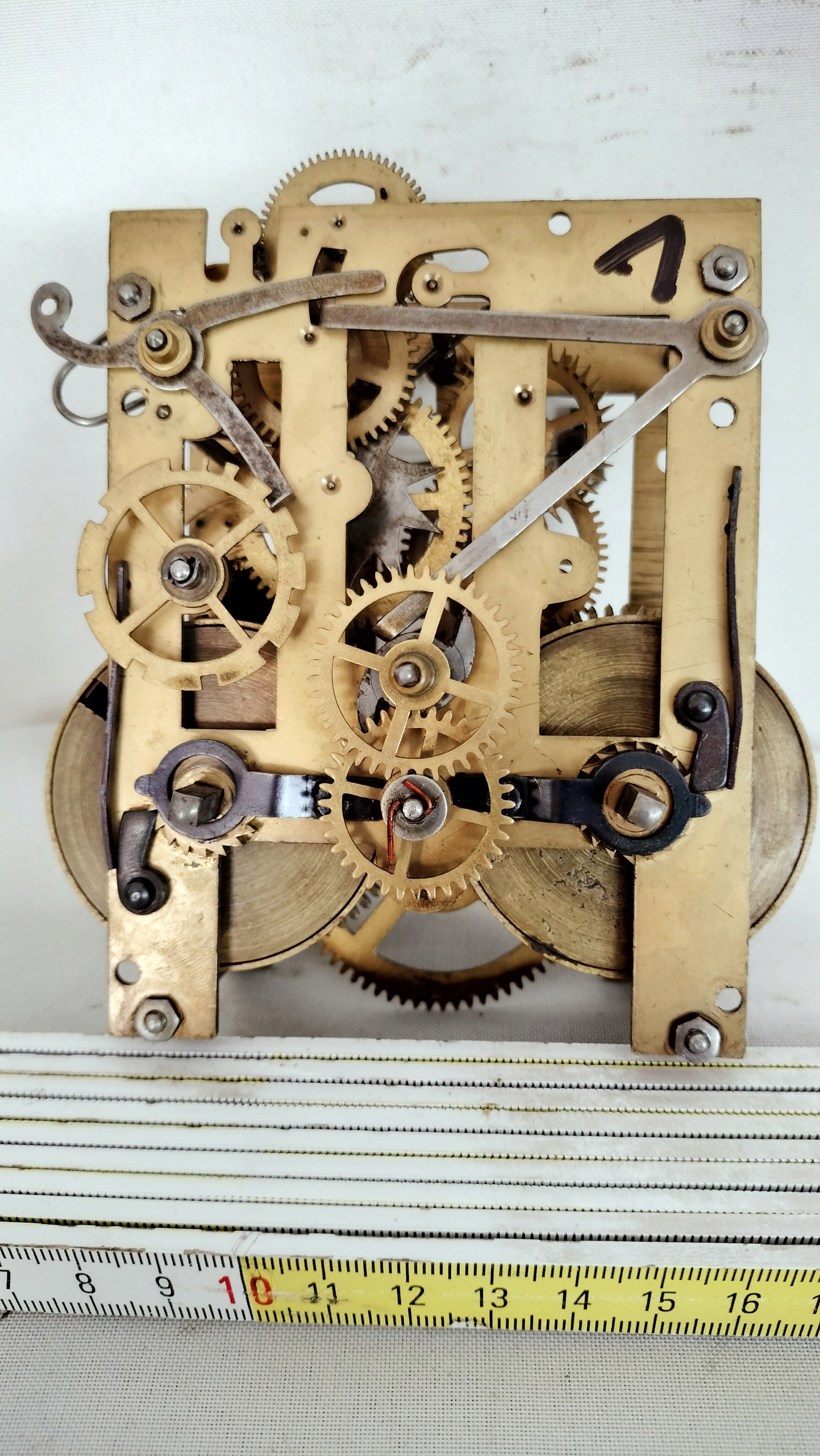 Механізм справний. Пружини цілі. Хода зміщується, биття активне, але рухатися важко.