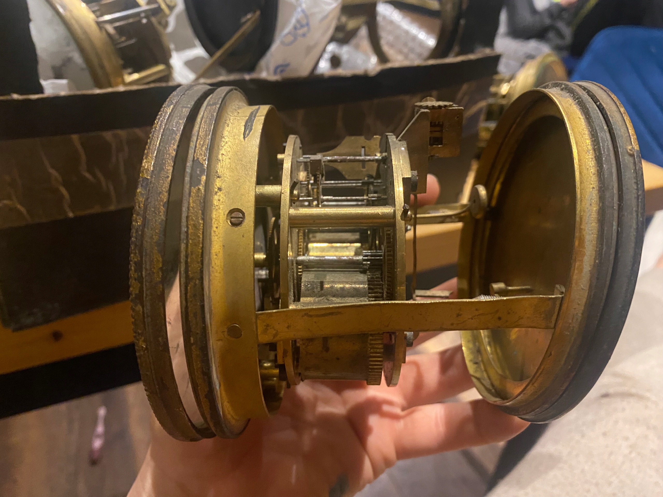 У механізмі: сучасний ключ і сучасний маятник, схожий на старий, підібрані. до механізму, щоб можна було встановити точність,