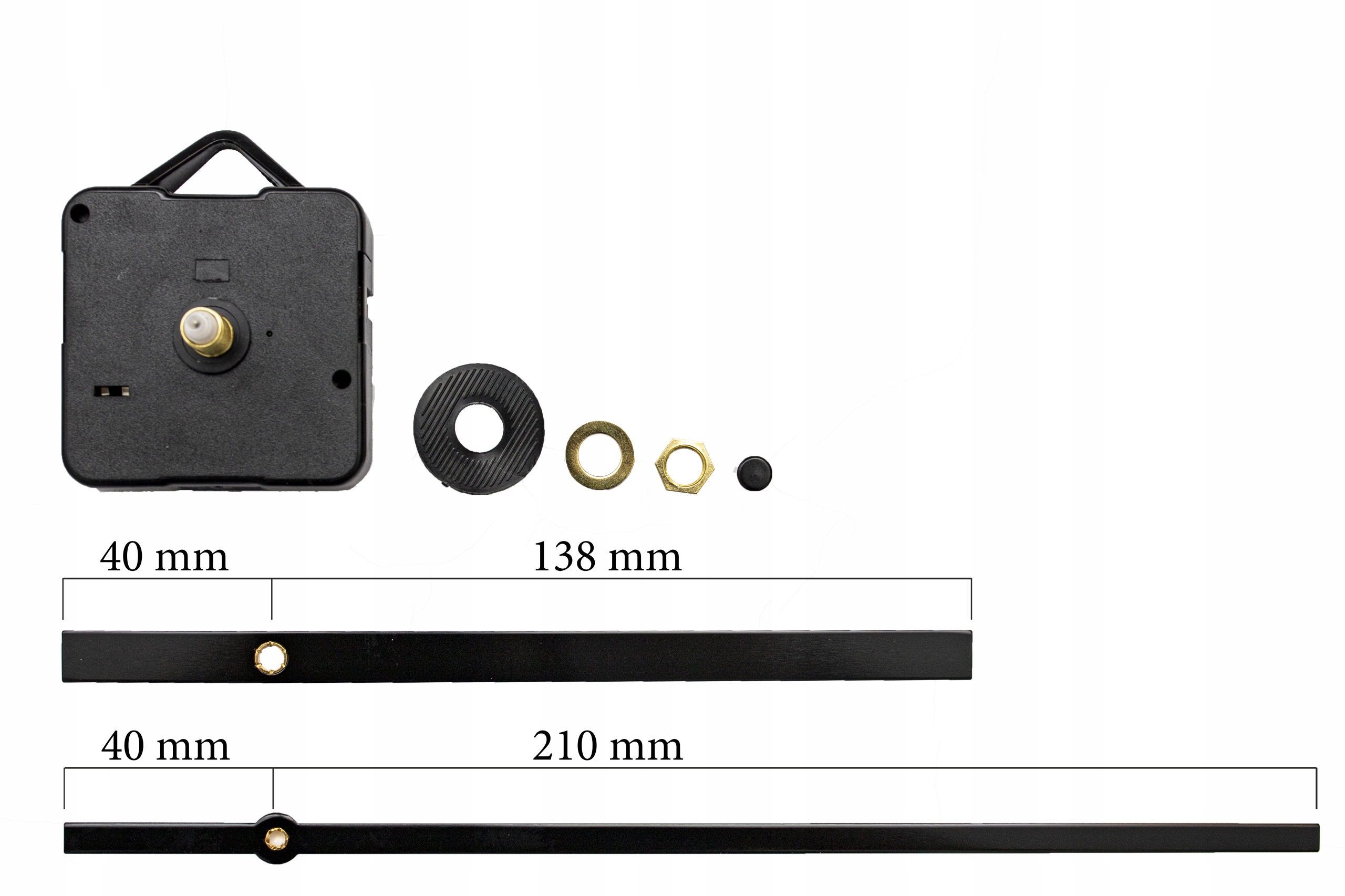Представлений набір складається з двох стрілок з розмірами: - година 13,8 см -хвилина 21 см від осі .
