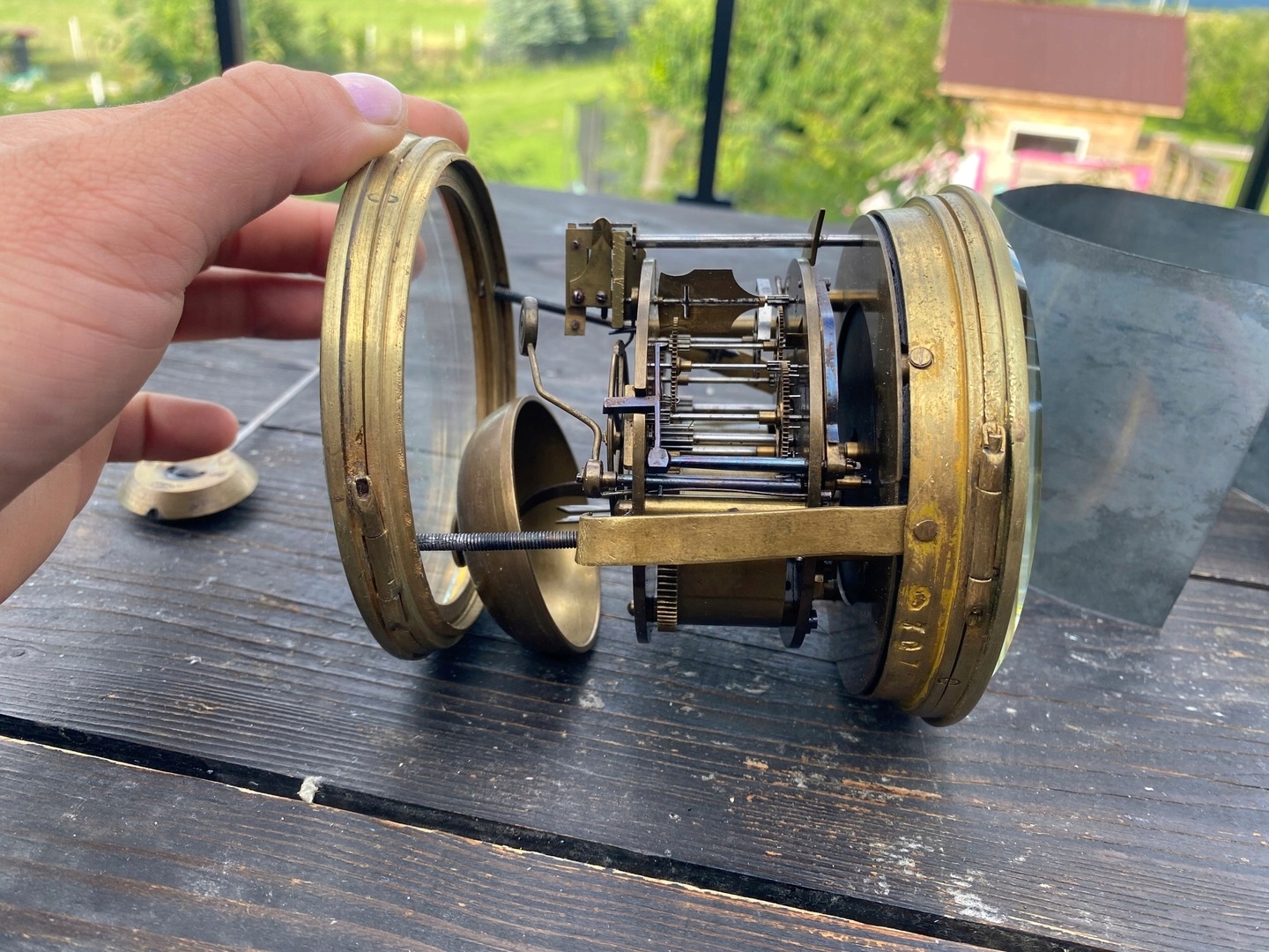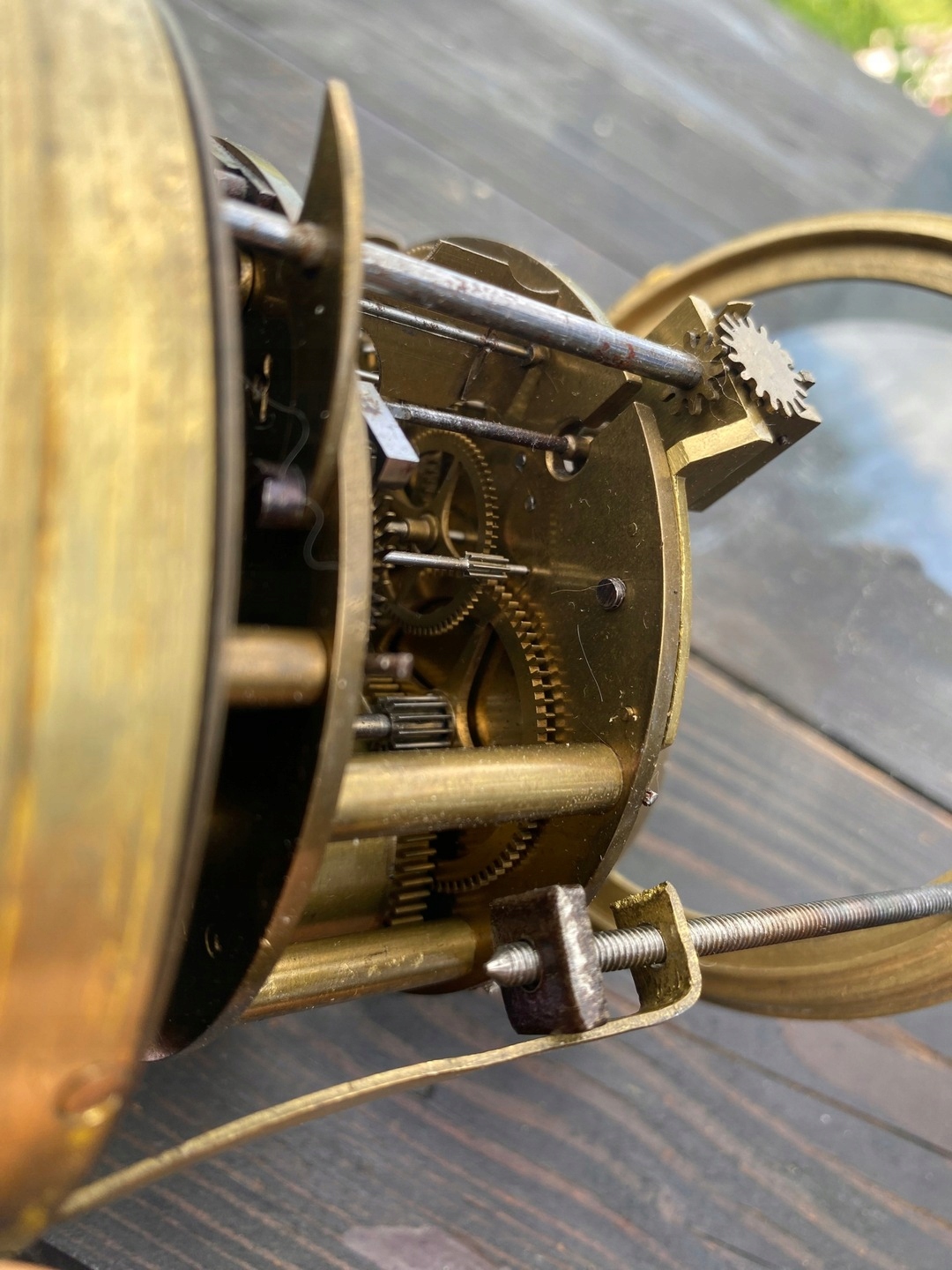 Пружинний механізм - справний, в хорошому стані, відбиває години та півгодини. Пружини для заводу механізму і биття по порядку.
