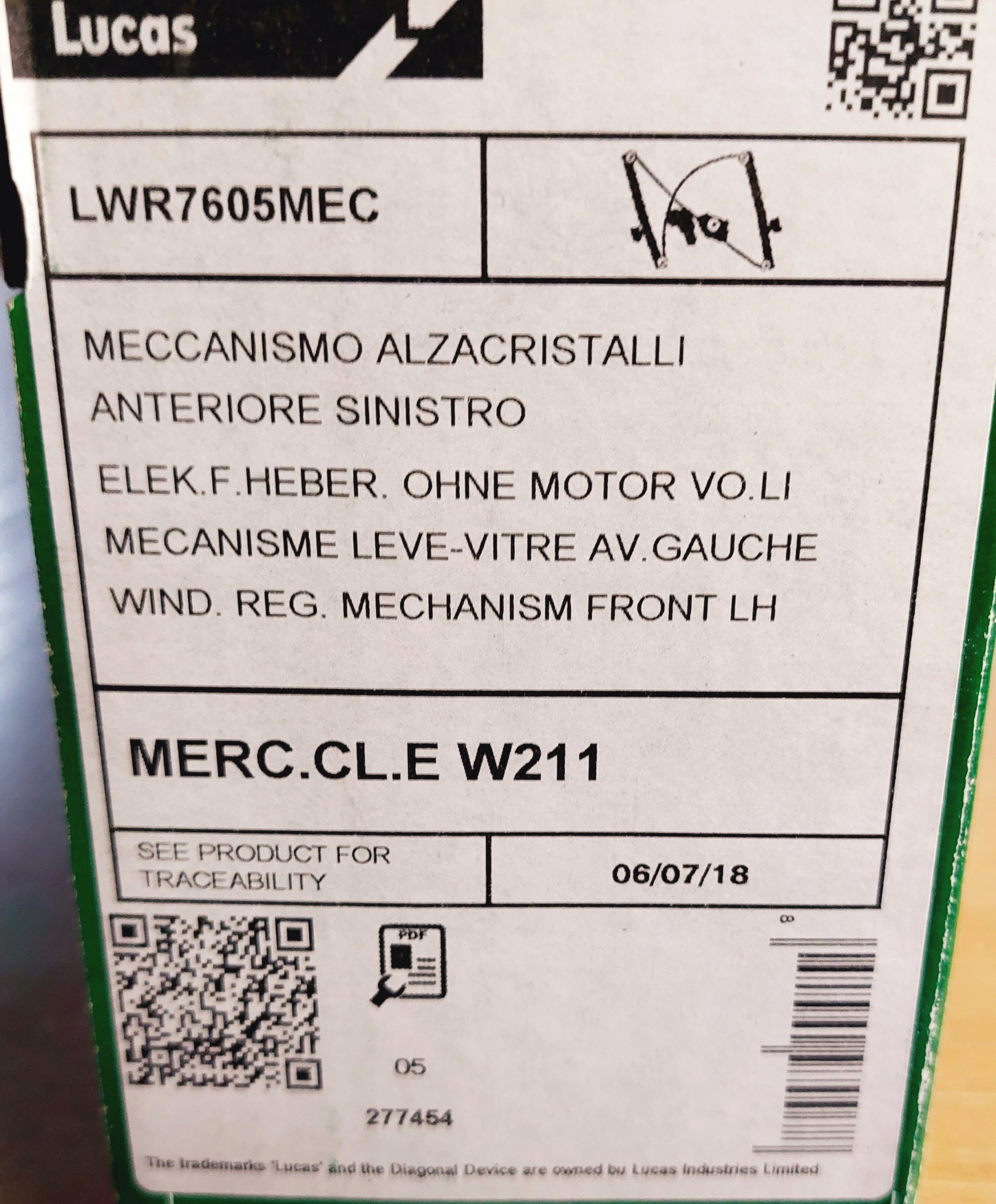 Механізм підйому скла Lucas LWR7605MEC Mercedes Benz Cl e W211