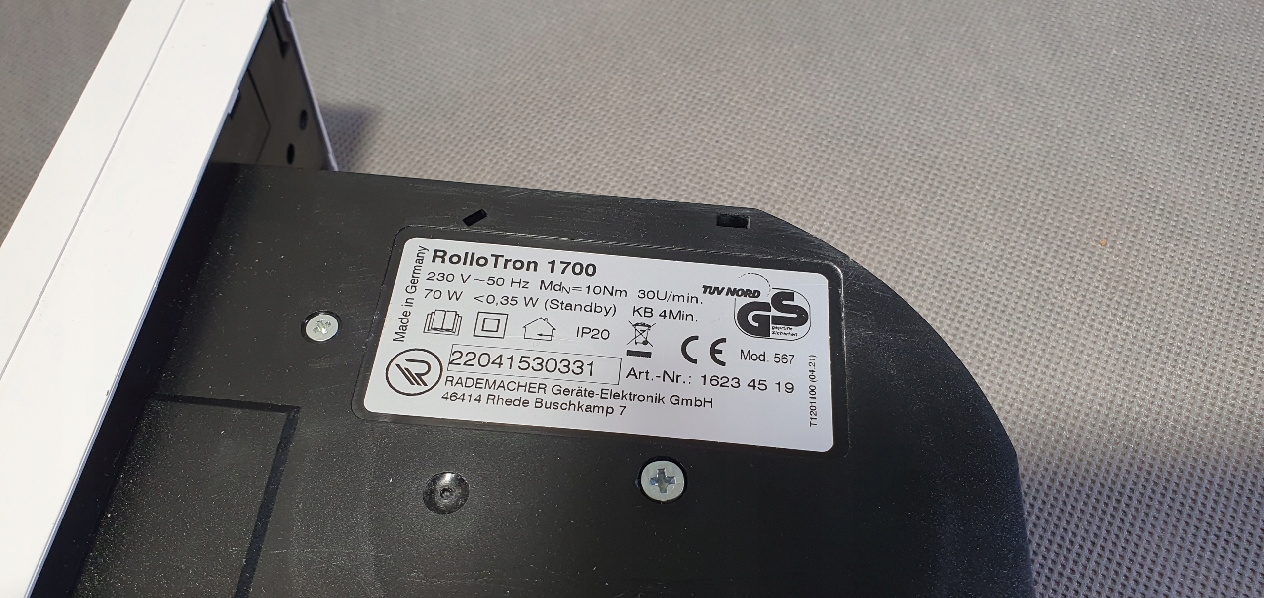 Електропривід для рулонних штор WR Rademacher 16234519, вантажопідйомність: 45 кг, 230 В, 70 Вт