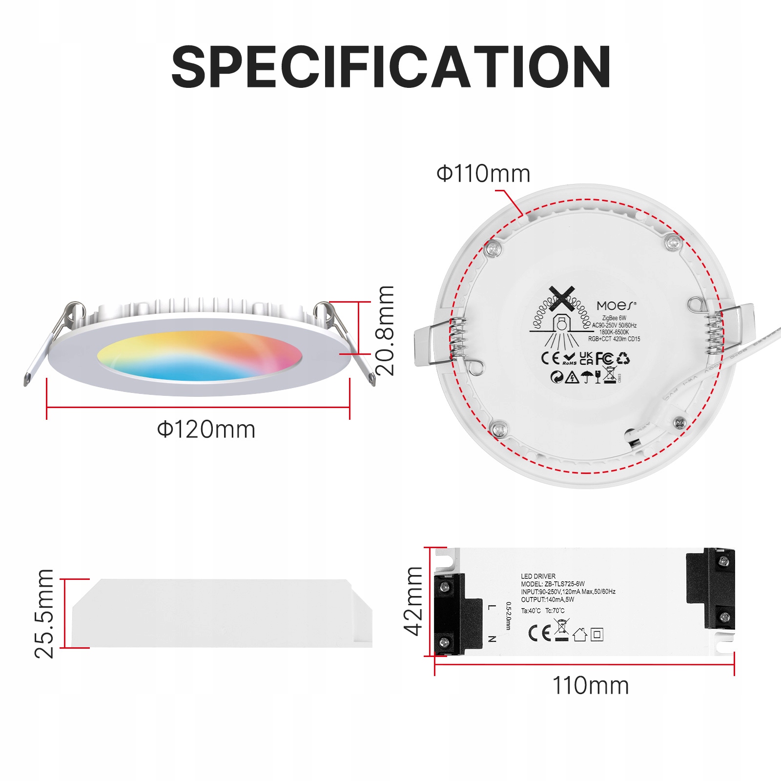 moes Zigbee Linklight tuya Тонка затемнна точка лампа 6 Вт RGB Зміна тепла, прохолодна легка робота з Alex Google Home Intelligent Life на вечірці