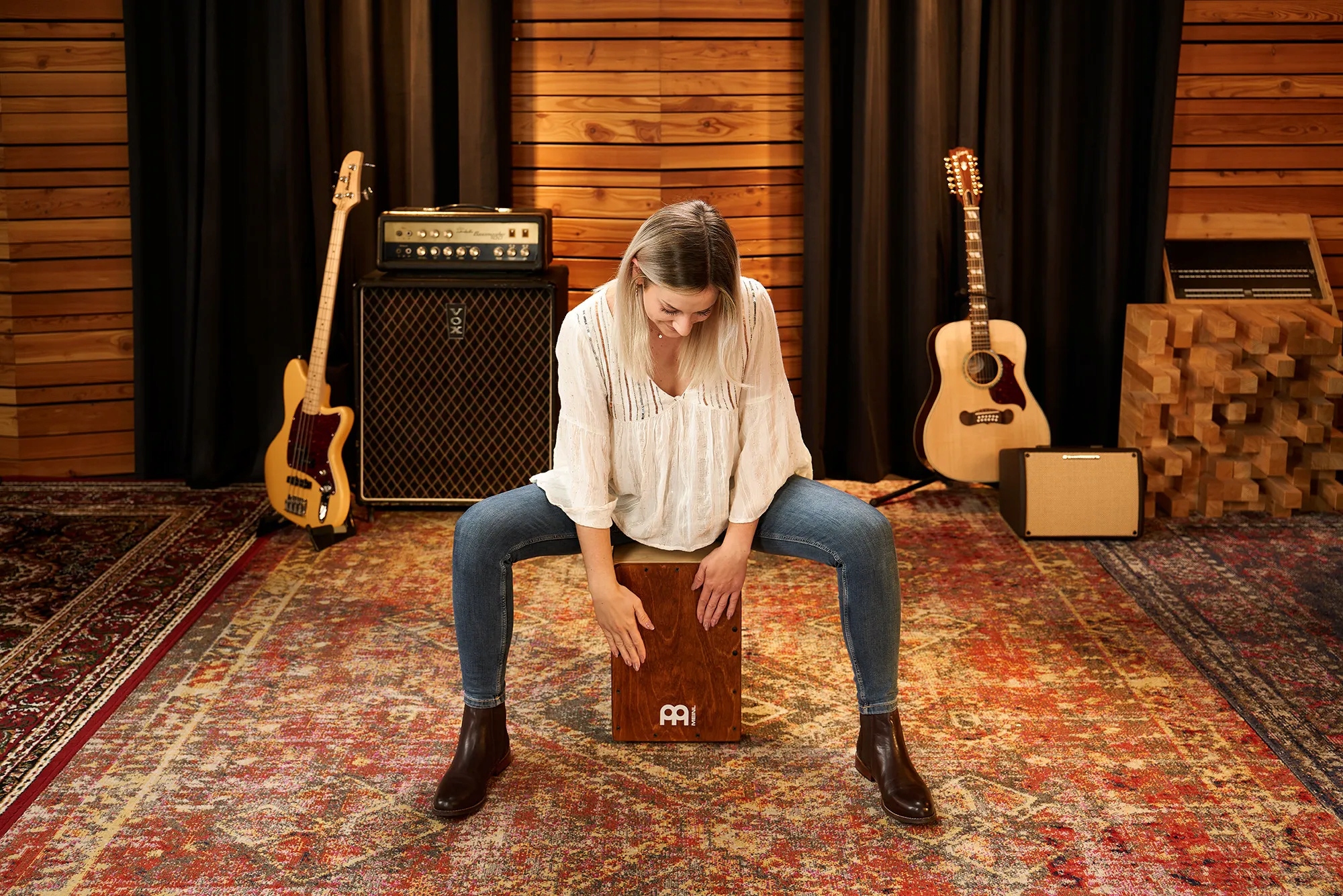 Meinl Jam Cajon виготовлений у Європі з 7-шарової (9 мм) Балтійської березичної деревини, що забезпечує його чудовою силою та чудовими акустичними властивостями. Його конструкція дозволяє отримати міцний, глибокий бас, коли потрапляє в центр і чіткі звуки "ляпасть", коли граєте у верхніх куточках ігрової поверхні.