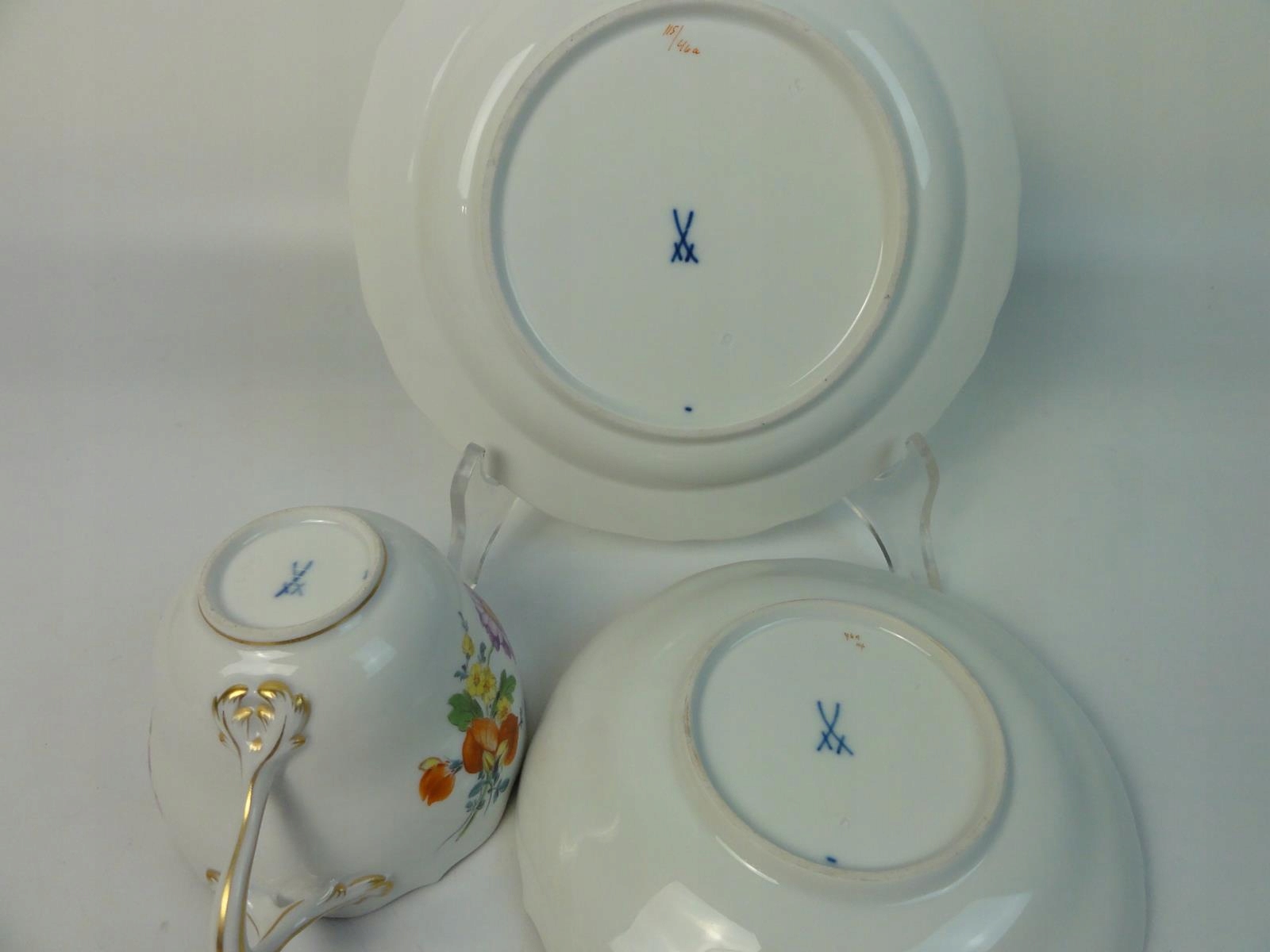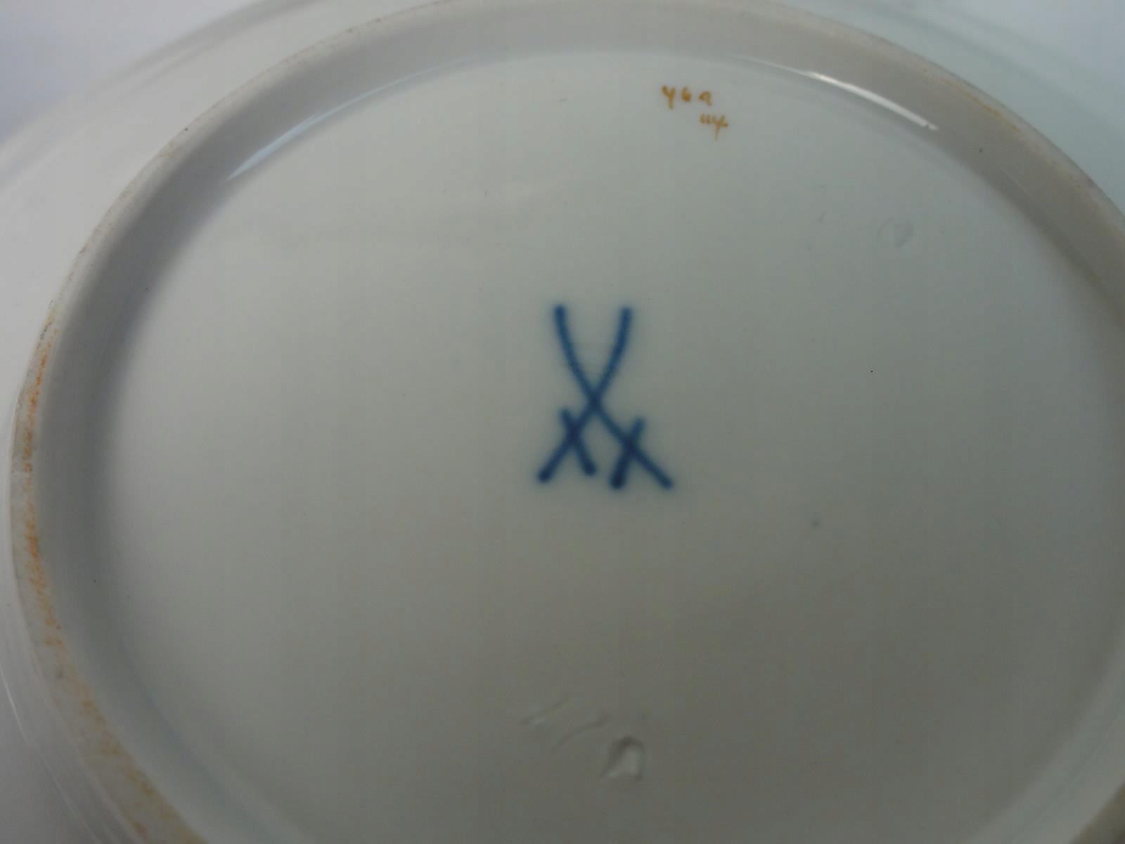 *підписана: meissen, на плиті та пластині, мечі з двома порізами, на чашці з чотирма,