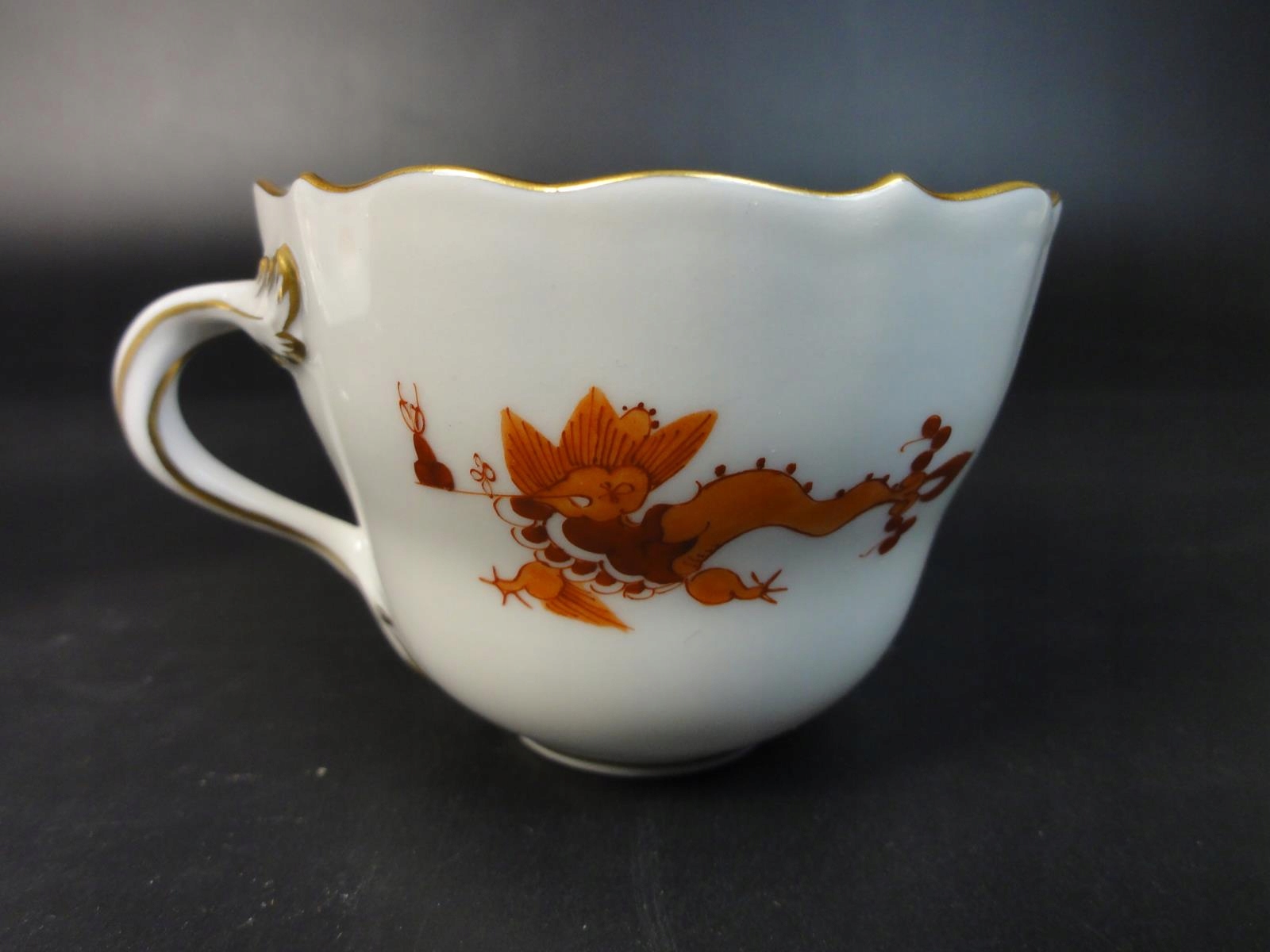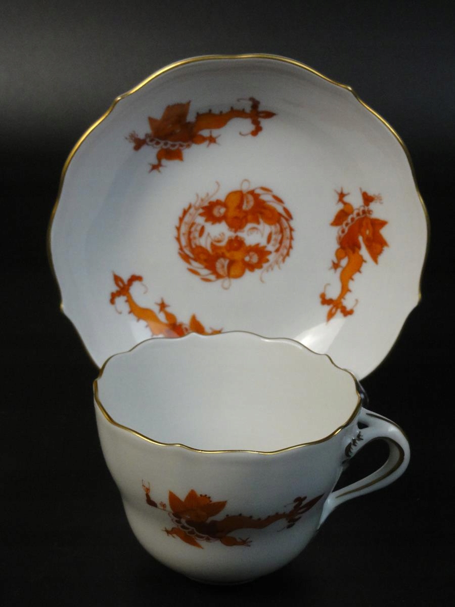 MEISSEN BEDROOM CUP AND SAUCE DUO MOCHA RED DRAGON