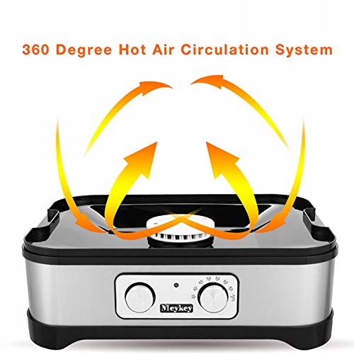 Мейкі харчова сушарка - це ідеальне рішення для сушіння фруктів, овочів, грибів, трав, м'яса та інших харчових продуктів. Це дозволяє легко регулювати температуру від 30 ° С до 70 ° С ручкою та кнопками. Завдяки функції таймера ви можете встановити час сушіння від 0 до 24 годин, а сушарка автоматично вимкнеться після завершення. Система циркуляції забезпечує навіть розподіл тепла, що гарантує високу якість висушених продуктів.