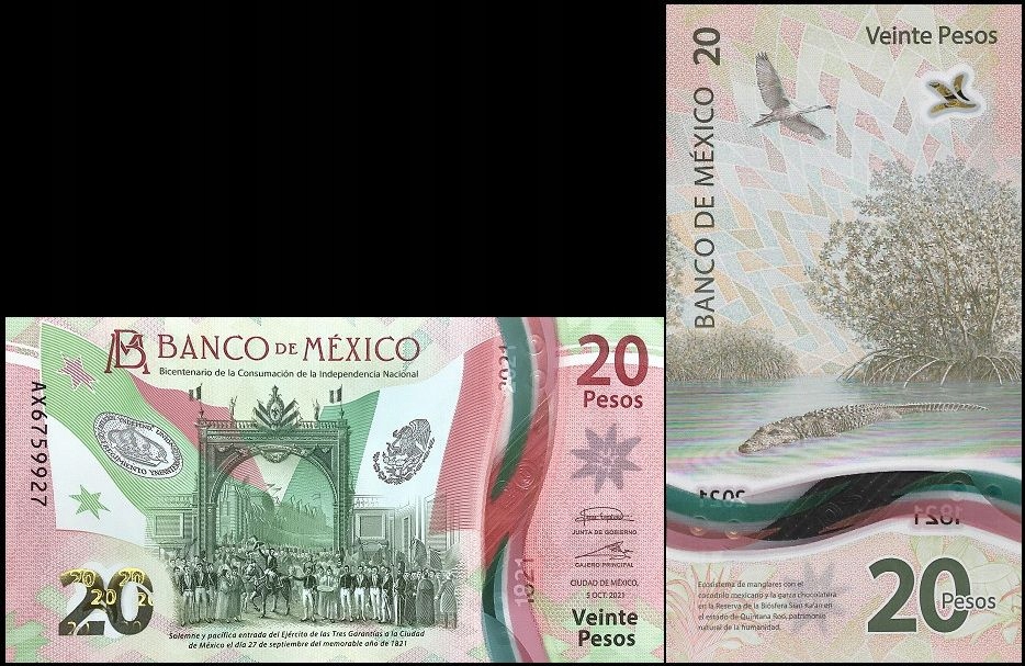МЕКСИКА, 20 ПЕСО 10.05.2021, пластик, вибір W132(3)