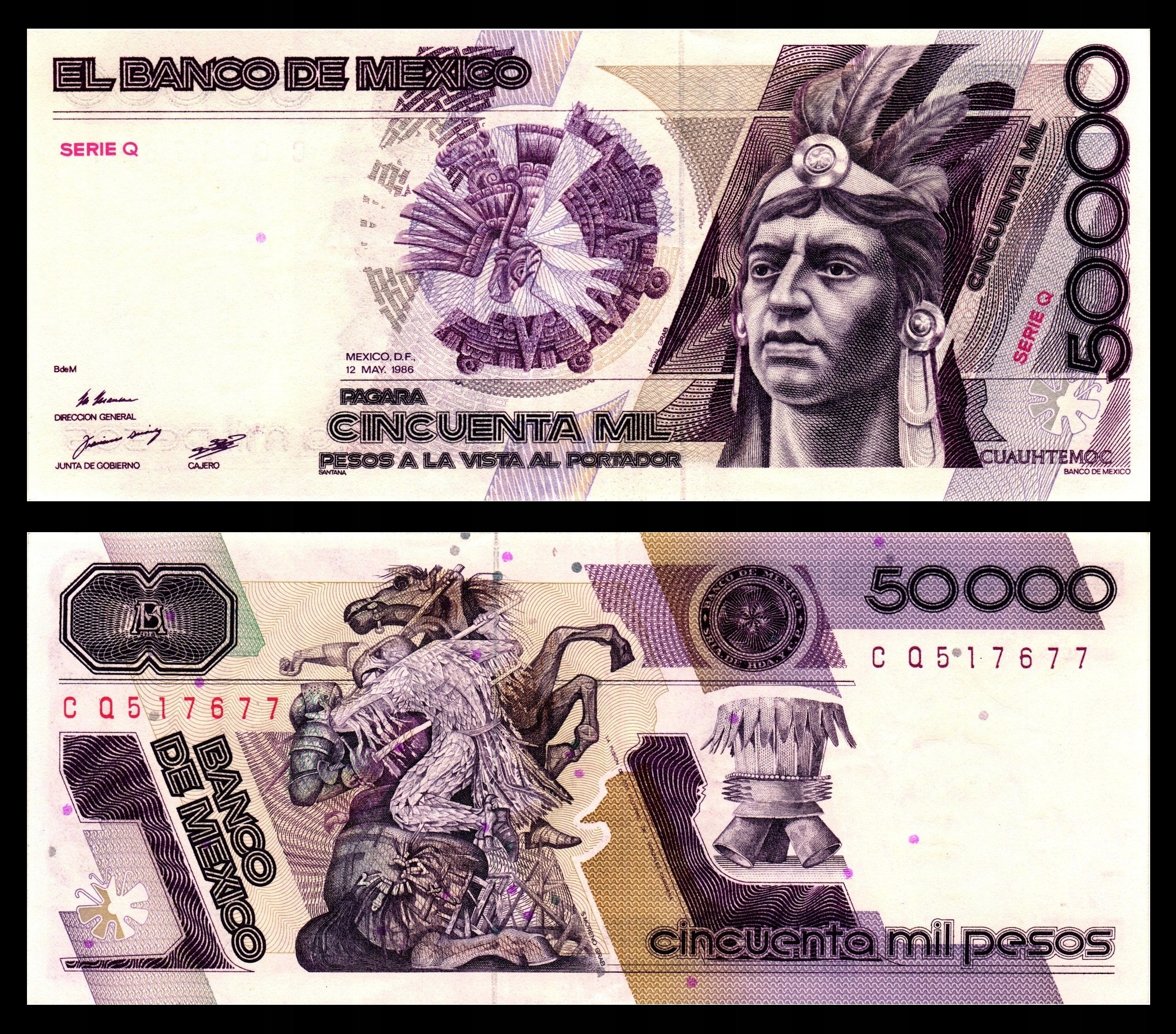 MEKSYK 50000 Pesos 1986 P-93a SERIA Q UNC