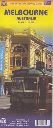 Складна, одностороння карта міста Мельбурн, масштаб 1:12 500. Легенда англійською мовою. Видання містить покажчик вулиць, схему громадського транспорту та карту околиць Мельбурна в масштабі 1:480 000.