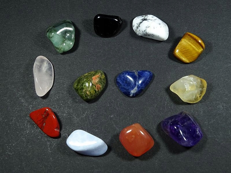 Турмалін, опал, тигрове око, цитрин, аметист, сердолік, халцедон, червона яшма, рожевий кварц і смарагд.