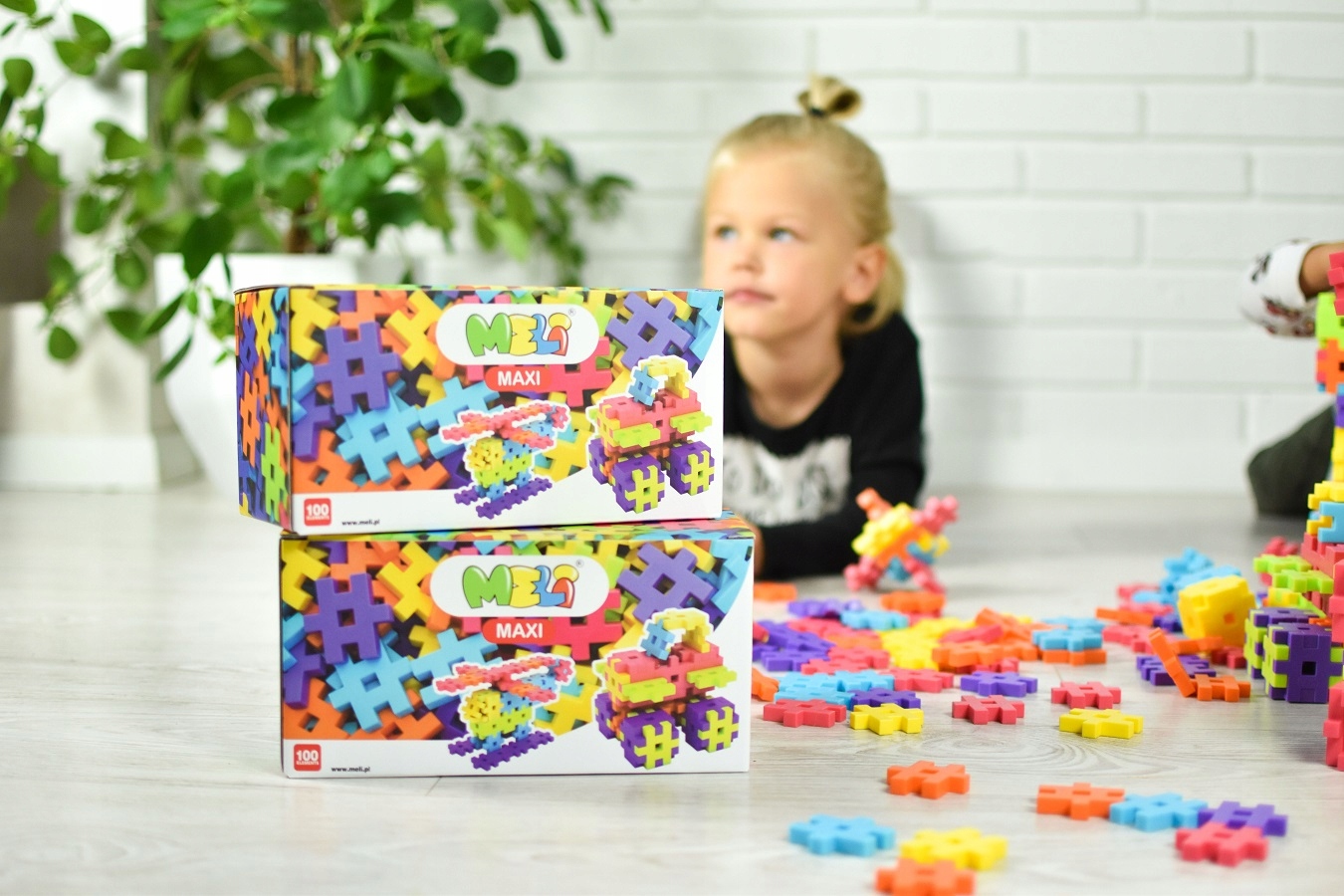 Розвиток дитячих здібностей і дослідження світу завжди повинні йти пліч-о-пліч із розвагою! Тому був створений набір MELI MAXI, який містить 100 оригінальних елементів, які заохочують дітей від року до активної гри. Чому цей набір такий особливий? Завдяки йому, за невеликої підтримки батьків, юний дослідник має можливість будувати плоскі та просторові об'єкти. Елементи насичених кольорів, які легко комбінувати, вчать дитину їх розрізняти, сприяють розвитку та заохочують до самостійної та творчої гри. За допомогою спритних дитячих рук зі 100 елементів можна створити, наприклад, гелікоптер, іграшкову машинку чи собаку. Більше того, ми гарантуємо, що демонтаж раніше побудованих форм є таким же захоплюючим!