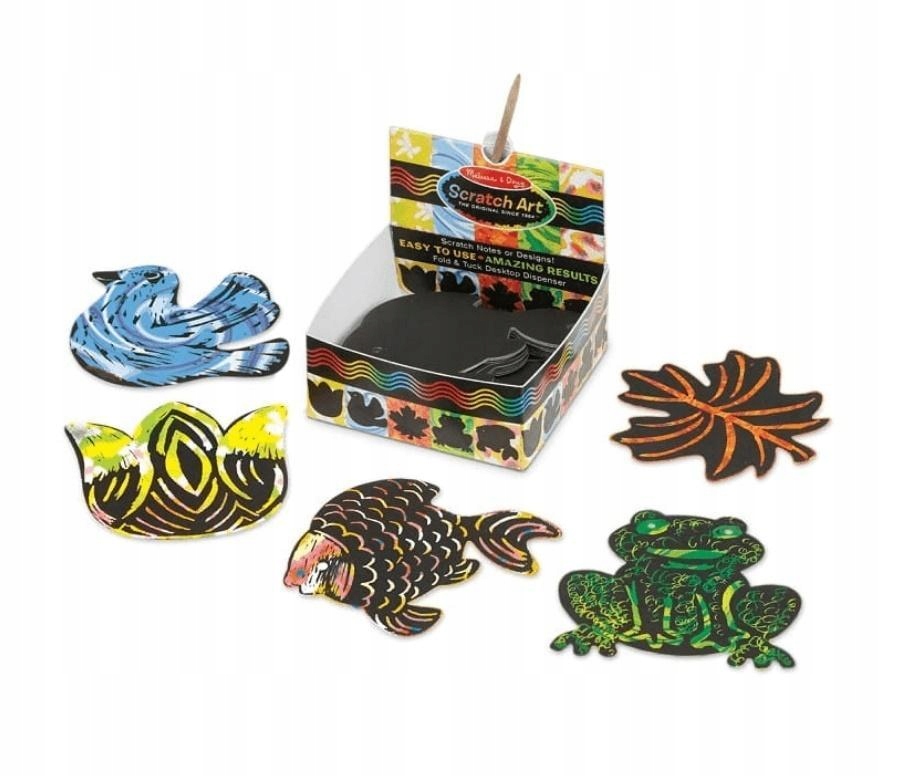 прості у використанні, дивовижні результати та сюрпризи, виявлені з кожною подряпиною. Scratch Art Notes - це унікальний спосіб створення повідомлень, дизайнів, підвісок подарунків тощо! Подряпайте чорне покриття, щоб виявити п'ять різних барвистих конструкцій. Кожна коробка містить 125 карт (близько 3,5 дюйма на 3,5 дюйма) у п’яти океанах -техах (квітка, листя, жаба, риба та птах). Діти віком від 4 років можуть використовувати дерев'яний стилус для додавання проектів, писанок, дизайнів, слів, зображень та інших елементів для створення справді унікальних творів мистецтва! Нотатки та стилус зберігаються у зручній настільній коробці.